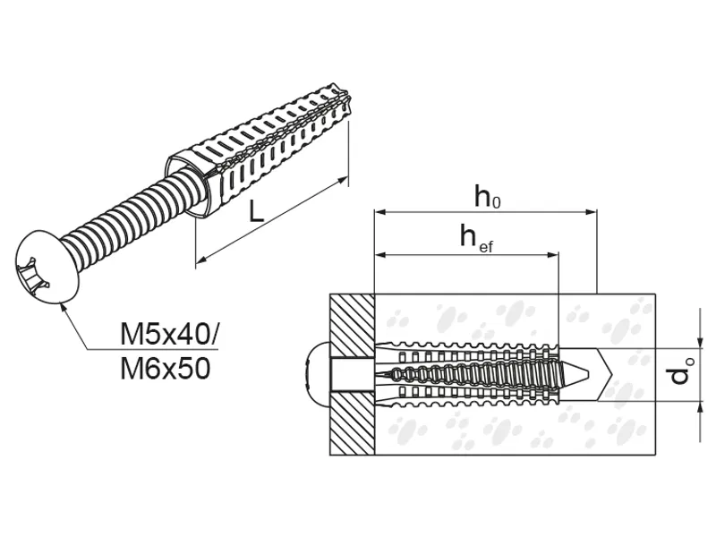 • Zastosowanie: mocowanie tras kablowych, korytek, konstrukcji metalowych do betonu, cegły, porobetonu, cegły silikatowej