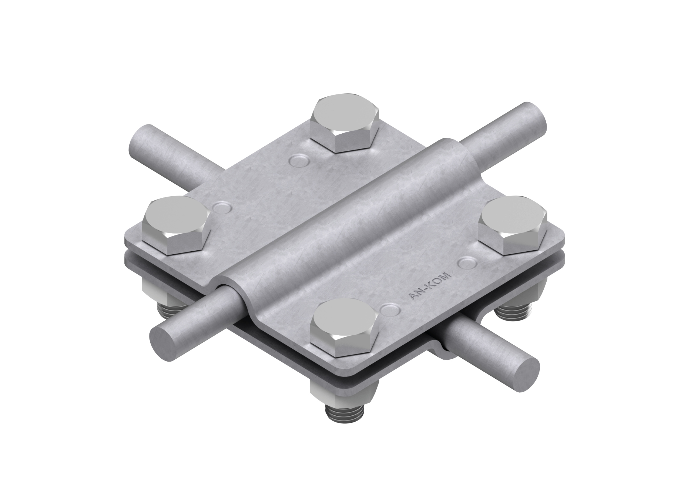Niezawodny element systemów odgromowych, przeznaczony do łączenia trzech przewodów okrągłych w układzie krzyżowym, równoległym lub typu „T”. Konstrukcja oparta na trzech płytkach i czterech śrubach zapewnia pewne, przewodzące i trwałe połączenie, które zachowuje swoje właściwości nawet w trudnych warunkach atmosferycznych. Wykonane ze stali ocynkowanej ogniowo, złącze gwarantuje długą żywotność oraz odporność na korozję. Spełnia wymagania klasy prądowej H = 100 kA, co czyni je idealnym rozwiązaniem do profesjonalnych instalacji odgromowych.