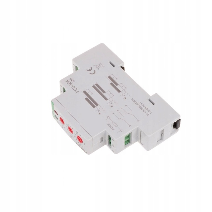 Produkt jest montowany na standardowej szynie DIN, co ułatwia jego instalację w rozdzielnicach i szafach sterowniczych.