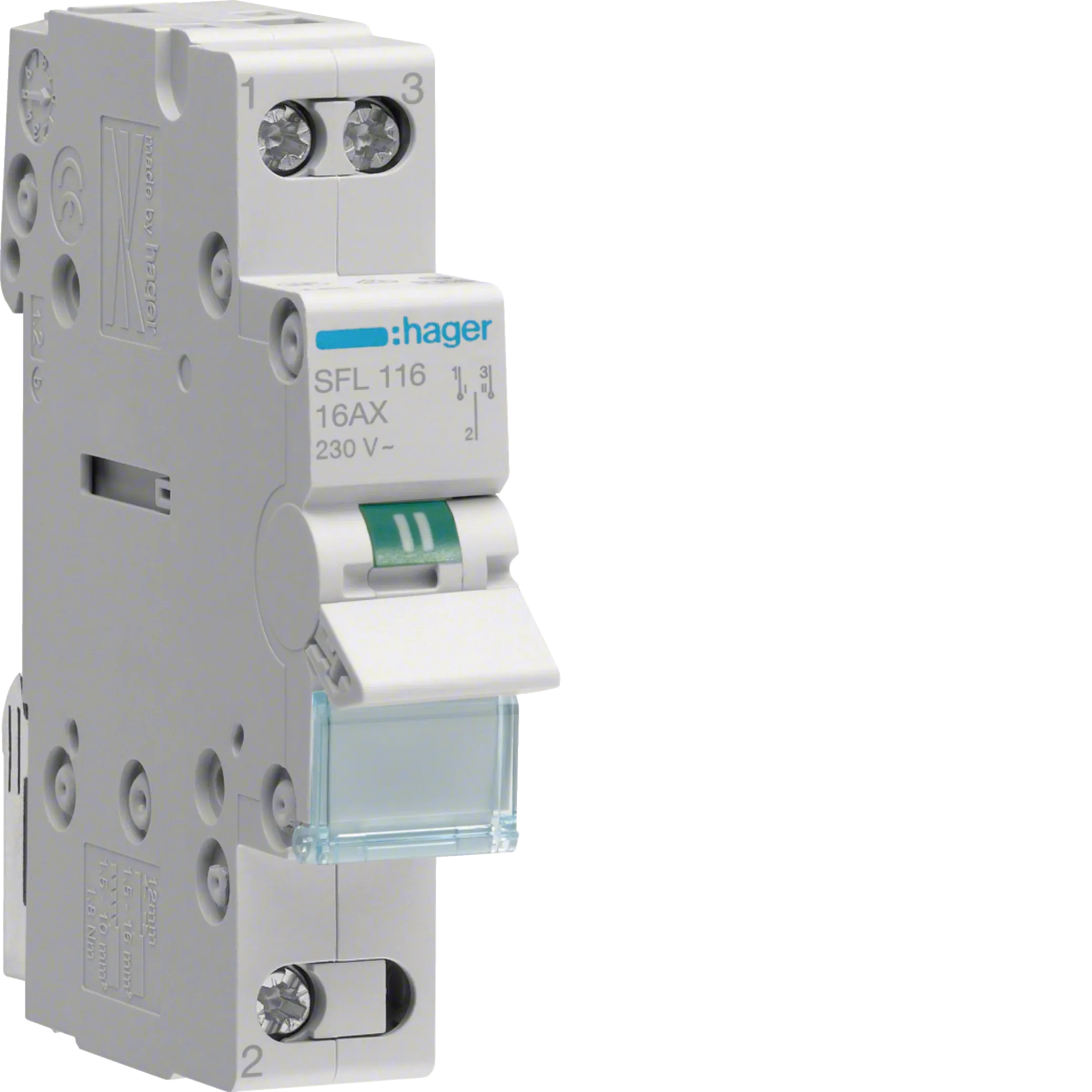 Umożliwia załączanie i wyłączanie obwodu oraz sygnalizuje jego pracę za pomocą zielonej lampki LED.