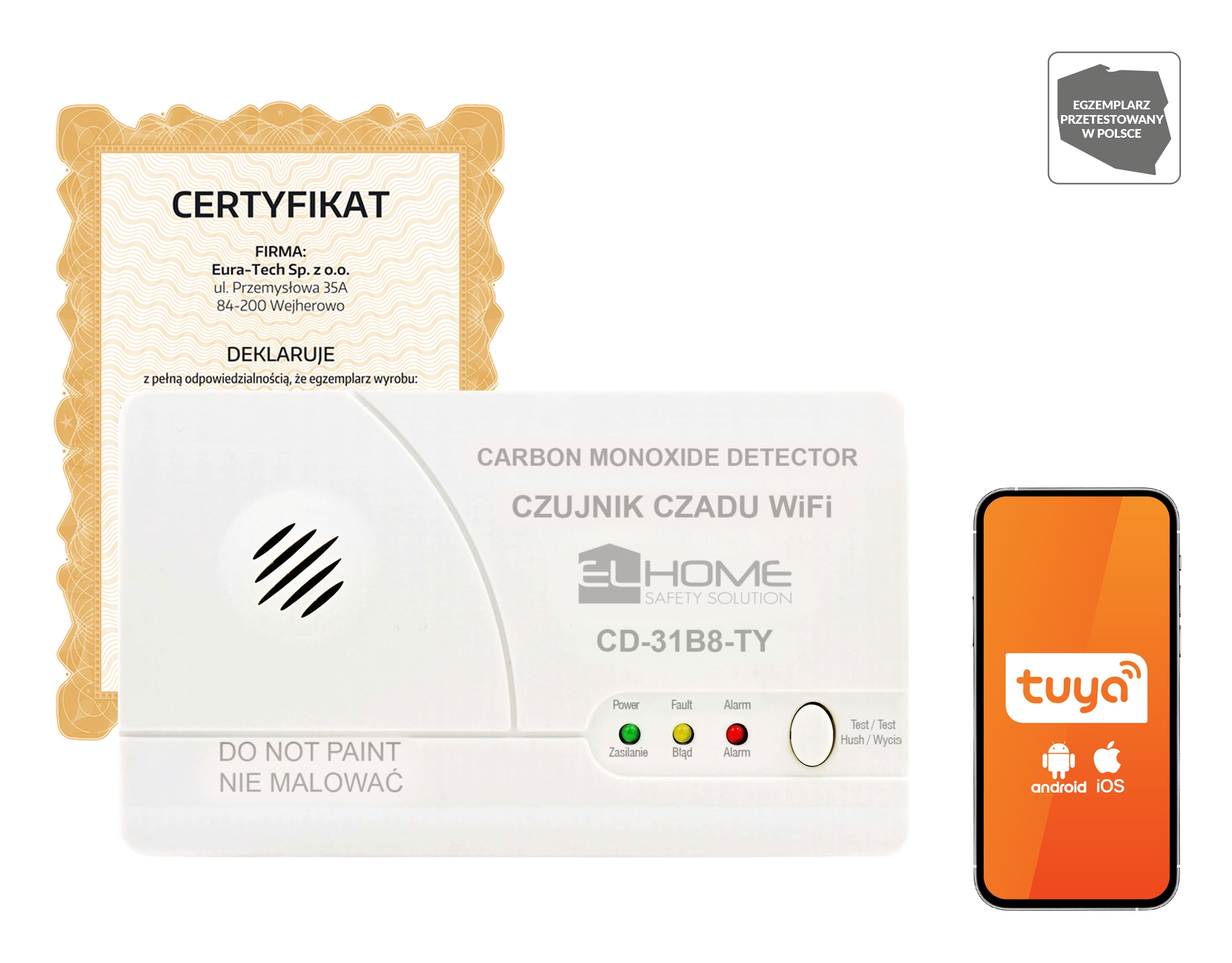 Nowoczesne urządzenie zwiększające bezpieczeństwo domowników poprzez ciągły monitoring stężenia tlenku węgla (CO). Dzięki wbudowanemu modułowi WiFi czujnik współpracuje z aplikacją Tuya, umożliwiając zdalny podgląd stanu urządzenia oraz otrzymywanie powiadomień alarmowych bezpośrednio na smartfon.