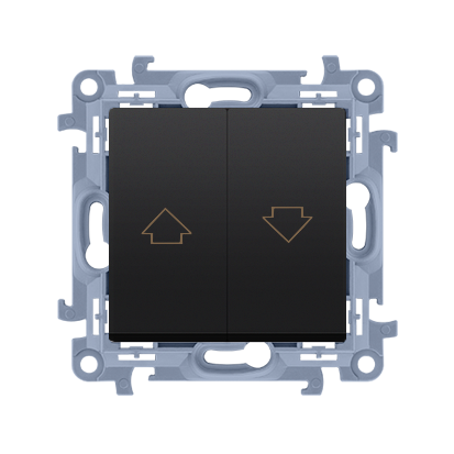 Łącznik pozwala na sterowanie żaluzjami lub roletami — jedna część klawisza służy do podnoszenia, druga do opuszczania, a pozycja środkowa zatrzymuje ruch.