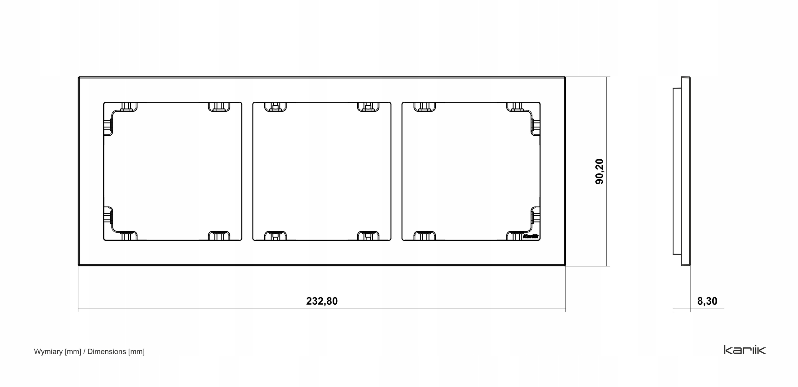 Ramka umożliwia zamocowanie trzech modułów — takich jak gniazda, łączniki lub wyłączniki — w jednym, spójnym zespole, co ułatwia uporządkowanie punktów sterowania światłem i urządzeniami oraz tworzy eleganckie wykończenie ściany.
