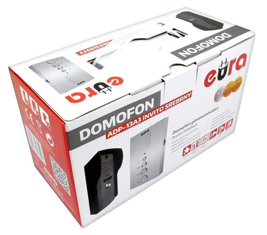 DOMOFON "EURA" ADP-13A3 "INVITO" SREBRNY, głośnomówiący, bezsłuchawkowy