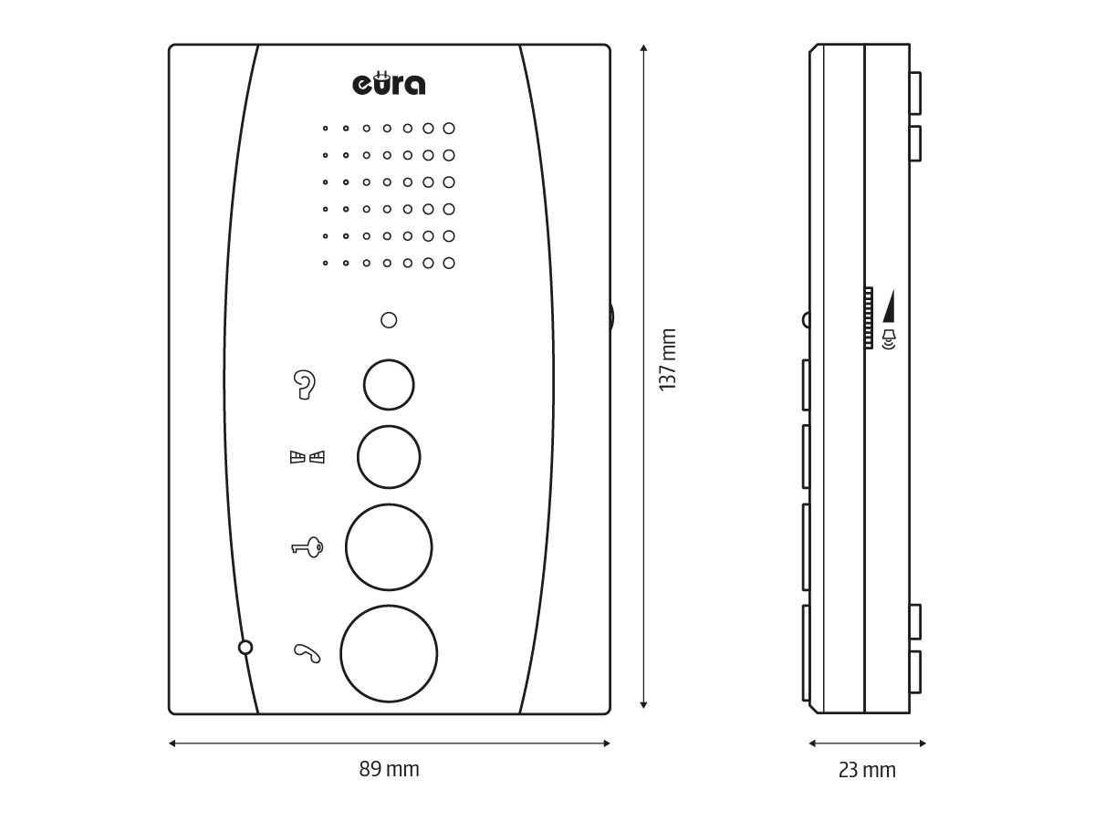 Nowoczesne i minimalistyczne rozwiązanie przeznaczone do domów jednorodzinnych oraz pojedynczych lokali. Zastosowanie komunikacji głośnomówiącej eliminuje konieczność używania słuchawki, co znacząco podnosi komfort codziennego użytkowania i wpisuje się w aktualne trendy designu.