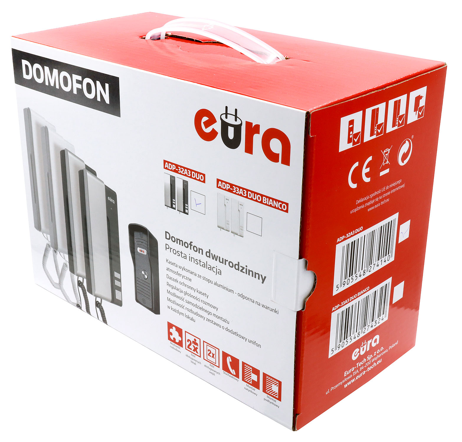 DOMOFON "EURA" ADP-32A3 "DUO" 2-rodzinnygrafitowo-srebrny, mała kaseta zewnętrz