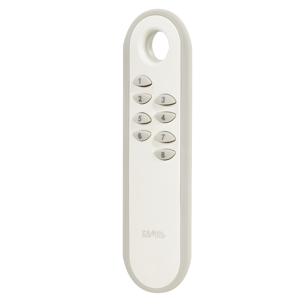 Poręczna forma pilota sprawia, że jest on wygodny w codziennym użytkowaniu, a duża liczba kanałów pozwala centralnie sterować różnymi elementami instalacji. Zasięg działania wynoszący do 250 m w otwartej przestrzeni zapewnia komfort i swobodę obsługi w domu, ogrodzie lub garażu.