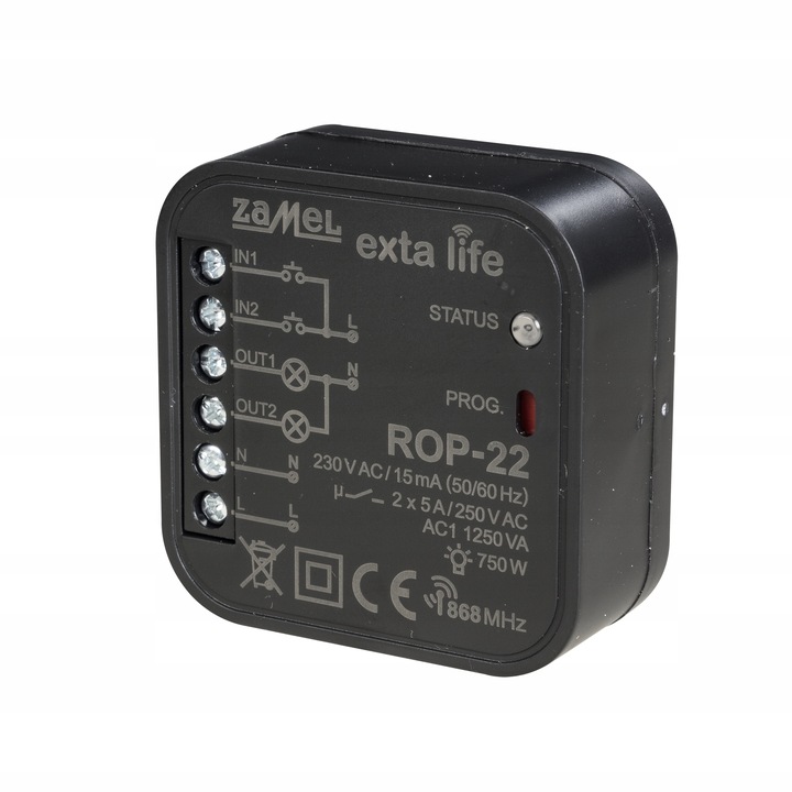 Nadajnik RNP-22 umożliwia bezprzewodowe sterowanie odbiornikami systemu EXTA LIFE. Przeznaczony jest do realizacji takich funkcji jak zdalne załączanie/wyłączanie oświetlenia, regulacja natężenia oświetlenia, zamykanie/otwieranie rolet okiennych i bram garażowych. Nadajnik dedykowany jest do montażu w puszkach podtynkowych (minimum Ø60mm) pod istniejącym osprzętem. Pozwala to na wykorzystanie osprzętu elektroinstalacyjnego dowolnego producenta i nie powoduje ograniczeń w zakresie designu i charakteru wnętrz. Nadajnik jest zasilany bateryjnie dzięki czemu może być montowany w dowolnym miejscu. Posiada cztery wejścia dzięki czemu możliwe jest niezależne sterowanie maksymalnie czterema odbiornikami (kanałami) systemu. Wyzwalanie jest realizowane poprzez zwarcie danego wejścia z przewodem COM nadajnika. Wbudowana dioda LED sygnalizuje transmisję, która jest kodowana co dodatkowo zapewnia bezpieczeństwo sterowania.