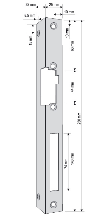 . Wymiary (W × SZ × G): 250 × 25 × 32 mm
