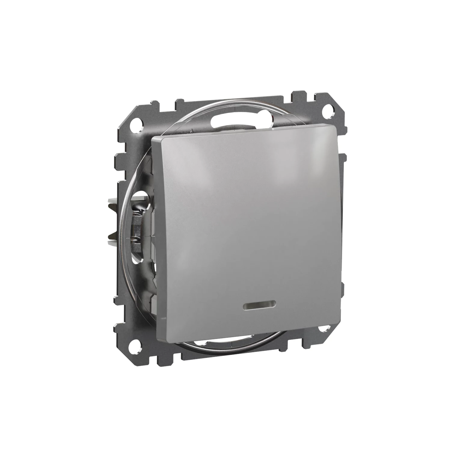 w kolorze srebrnego aluminium to eleganckie i funkcjonalne rozwiązanie do sterowania oświetleniem. Subtelne podświetlenie ułatwia lokalizację włącznika po zmroku, a nowoczesne wykończenie doskonale pasuje do współczesnych wnętrz. Produkt przeznaczony do montażu podtynkowego, kompatybilny z ramkami systemu Sedna Design & Elements.