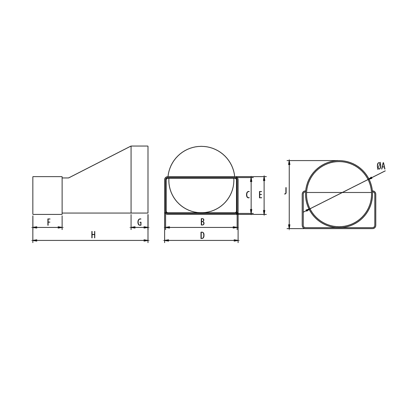 • Przeznaczenie: Połączenie kanałów okrągłych Ø104 mm z płaskimi 110×55 mm