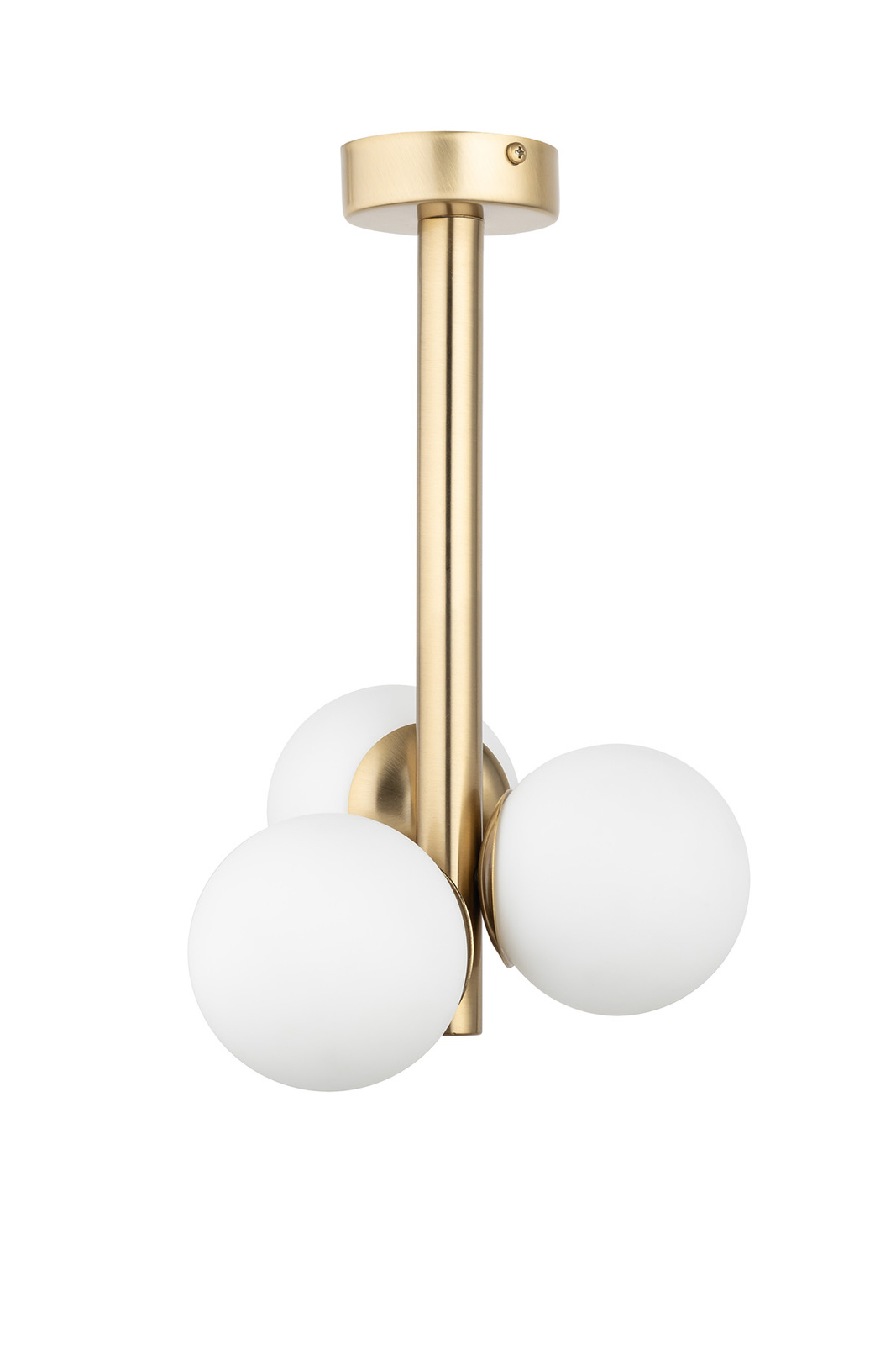 Eleganckie i stylowe oświetlenie sufitowe, które doskonale sprawdzi się w nowoczesnych oraz klasycznych wnętrzach. Trzy szklane klosze zapewniają równomierne, przyjemne światło, tworząc komfortową atmosferę w pomieszczeniu. Jasna kolorystyka w połączeniu z subtelnymi detalami nadaje lampie lekkości i uniwersalnego charakteru, dzięki czemu plafon świetnie pasuje do salonu, sypialni, jadalni czy przedpokoju. Niewielka wysokość oprawy czyni ją idealnym rozwiązaniem do pomieszczeń z niższym sufitem.