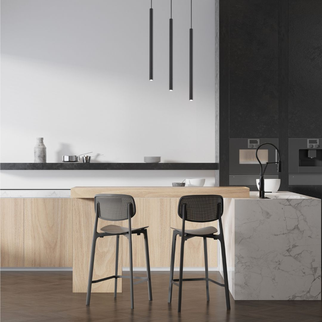 Minimalistyczne i nowoczesne oświetlenie, które doskonale wpisuje się w aranżacje loftowe, industrialne oraz nowoczesne. Trzy smukłe zwisy w formie rurek zostały rozmieszczone liniowo, dzięki czemu lampa idealnie sprawdzi się nad stołem, wyspą kuchenną lub blatem roboczym. Prosta forma i stonowana kolorystyka podkreślają elegancję wnętrza, a regulowana wysokość zawieszenia pozwala na precyzyjne dopasowanie oprawy do przestrzeni.