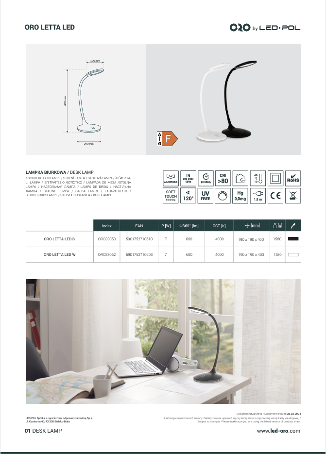 • Model: ORO LETTA LED B