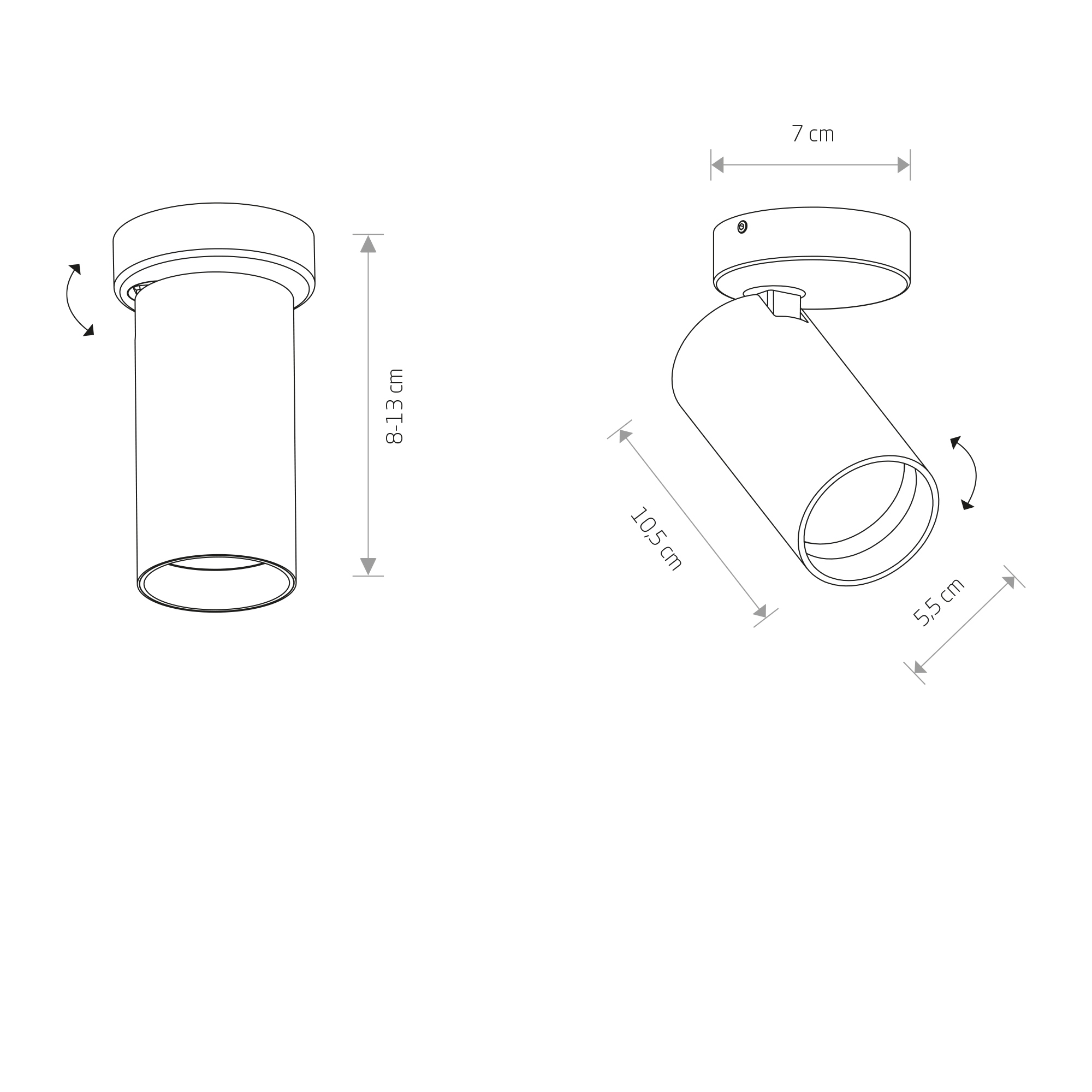 Regulowany reflektor umożliwia skierowanie światła w wybrane miejsce, co pozwala podkreślić konkretne strefy wnętrza. Dzięki zastosowaniu wymiennego źródła światła GU10 użytkownik może samodzielnie dobrać moc i barwę światła.
