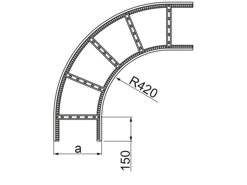 Solidny łuk drabinki kablowej 90° przeznaczony do profesjonalnych instalacji tras kablowych. Umożliwia estetyczną i bezpieczną zmianę kierunku prowadzenia przewodów, zachowując stabilność oraz wysoką nośność całej konstrukcji. Wykonany z trwałej stali cynkowanej, idealny do zastosowań przemysłowych i budowlanych.
