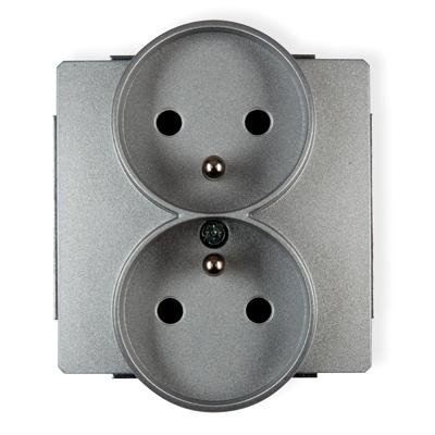 MINI Mechanizm gniazda podwójnego do ramki z uziemieniem 2x(2P+Z) (bez przesłon torów prądowych) biały mat podtynkowy