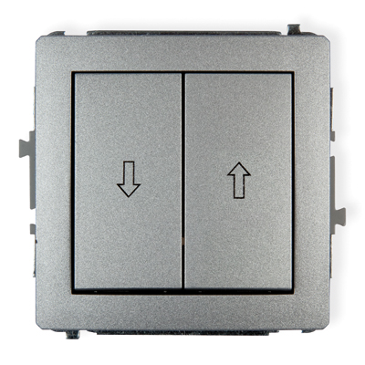 Elegancki przycisk żaluzjowy w kolorze szary matowy, zaprojektowany do sterowania osłonami okiennymi — żaluzjami, roletami czy markizami.