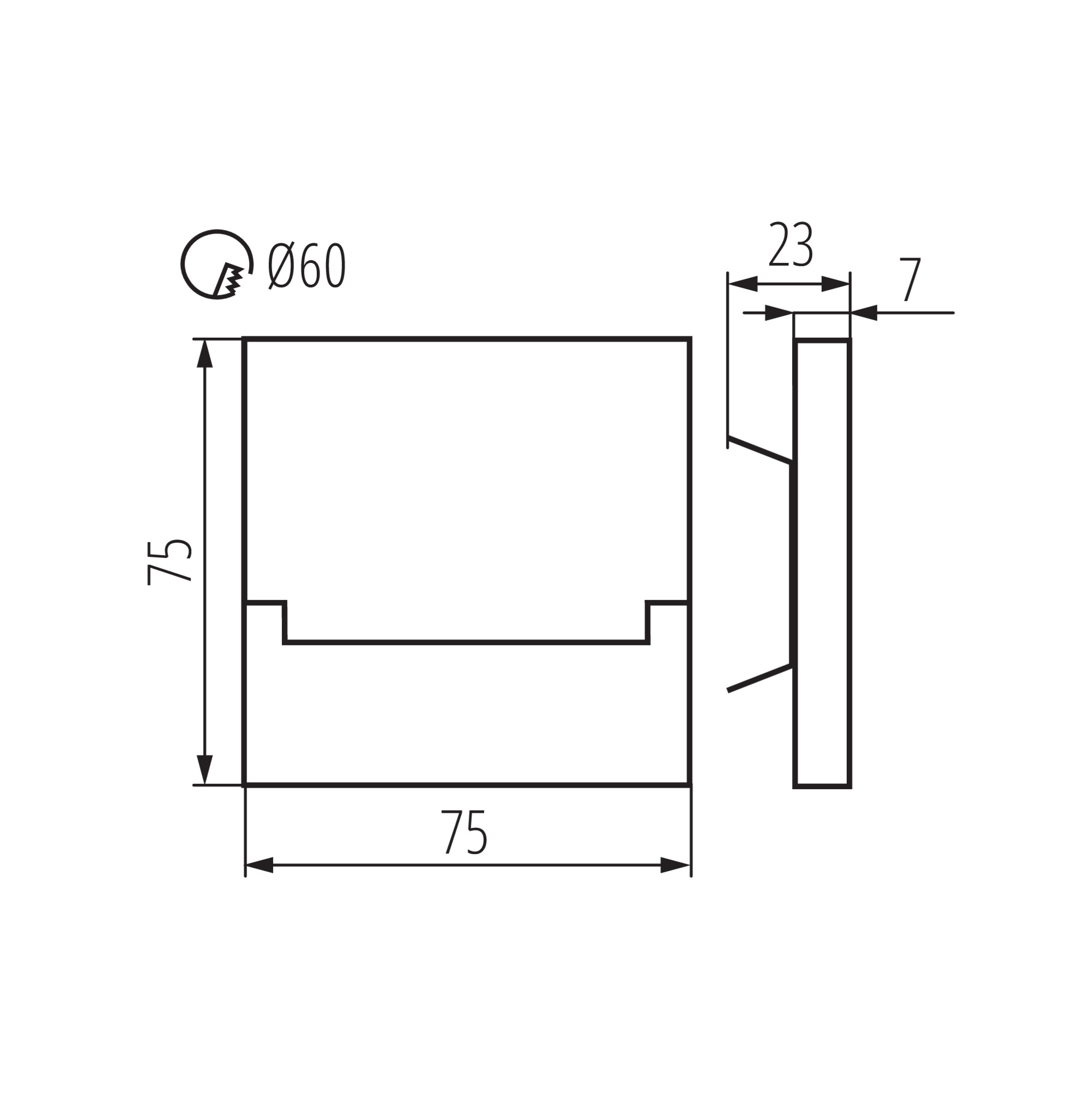 • Średnica otworu montażowego: 60 mm