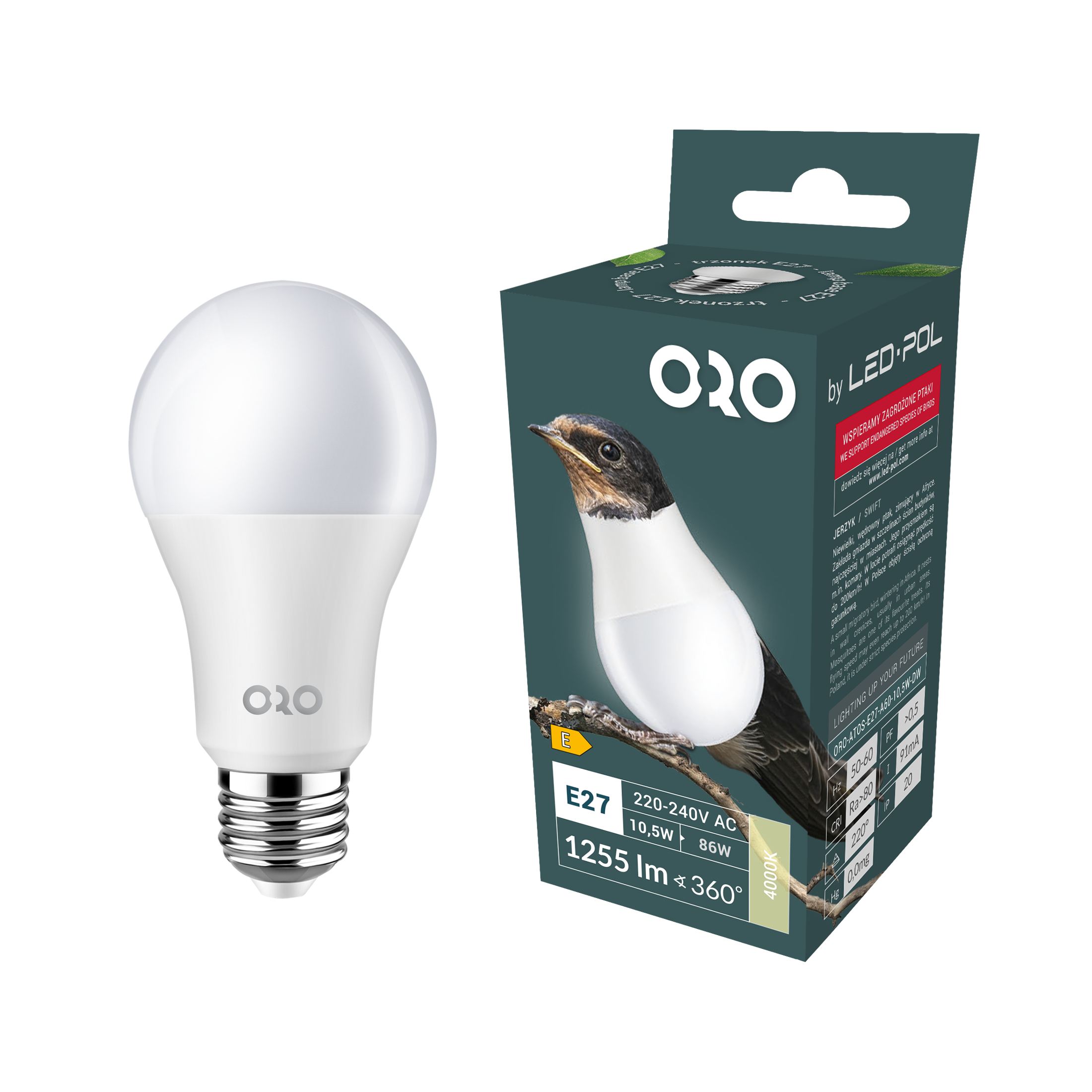 Uniwersalne i energooszczędne źródło światła o neutralnej barwie 4000 K, które doskonale sprawdza się w pomieszczeniach codziennego użytku. Emituje naturalne, jasne światło zapewniające komfort widzenia, nie męczy oczu i wiernie oddaje kolory. Dzięki standardowemu trzonkowi E27 oraz klasycznemu kształtowi A60, żarówka pasuje do większości opraw sufitowych, kinkietów, lampek biurkowych i żyrandoli.
