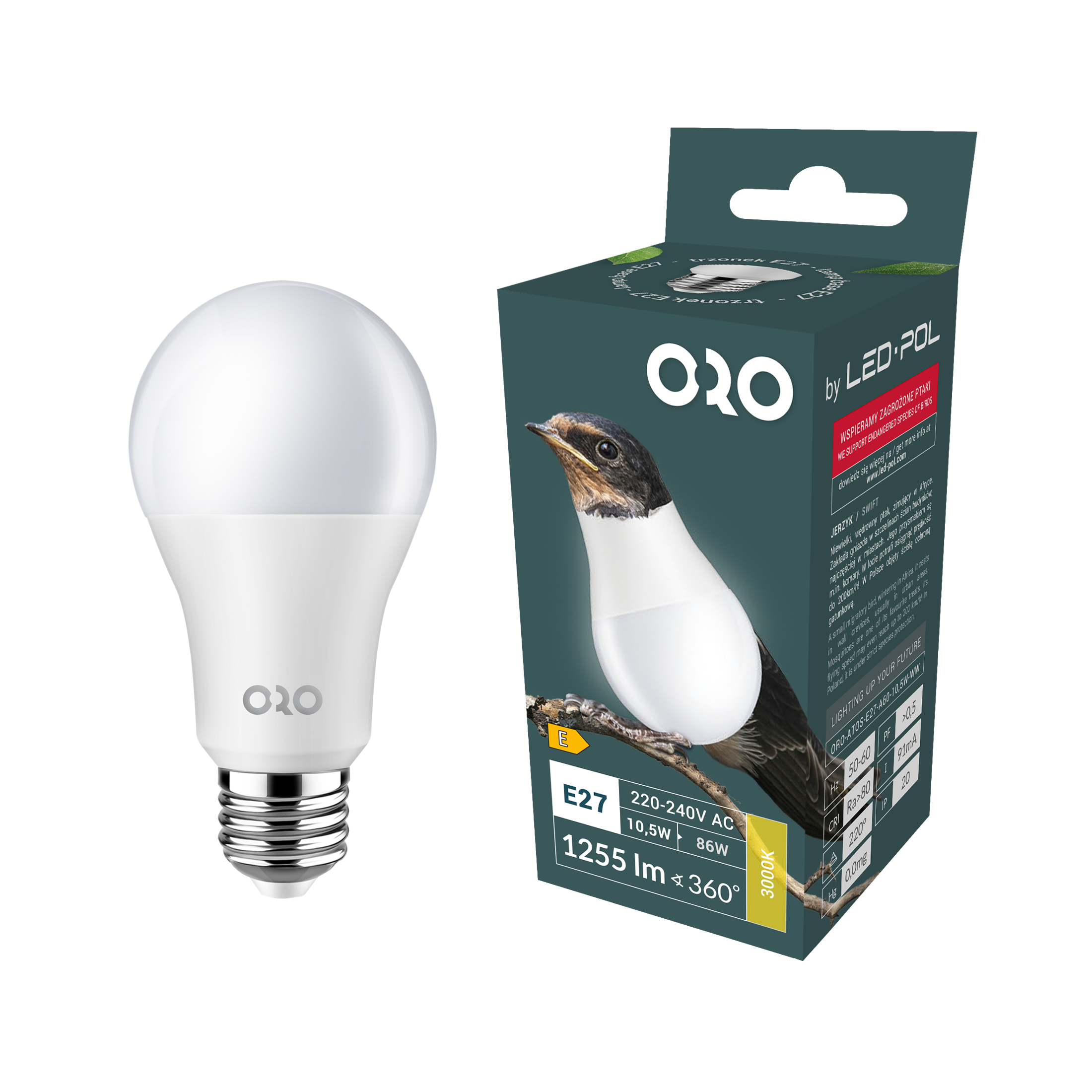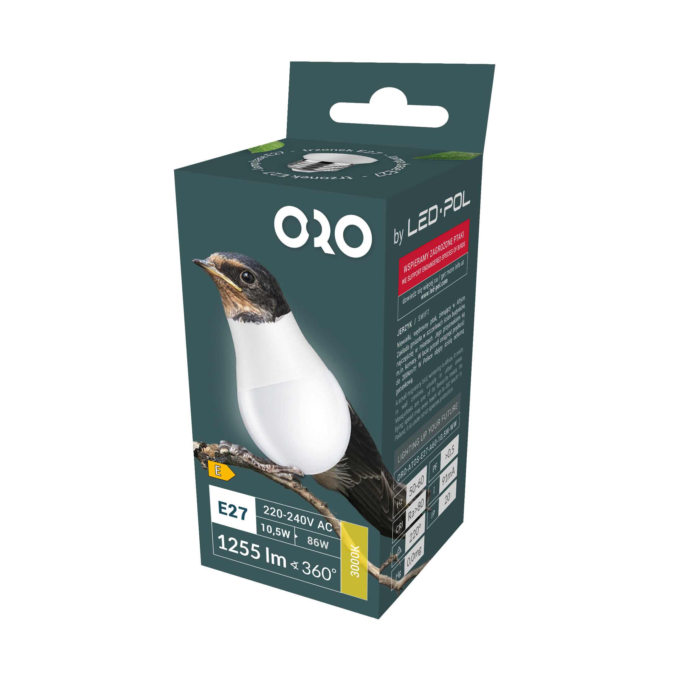 - Odpowiednik tradycyjnej żarówki: ok. 86 W