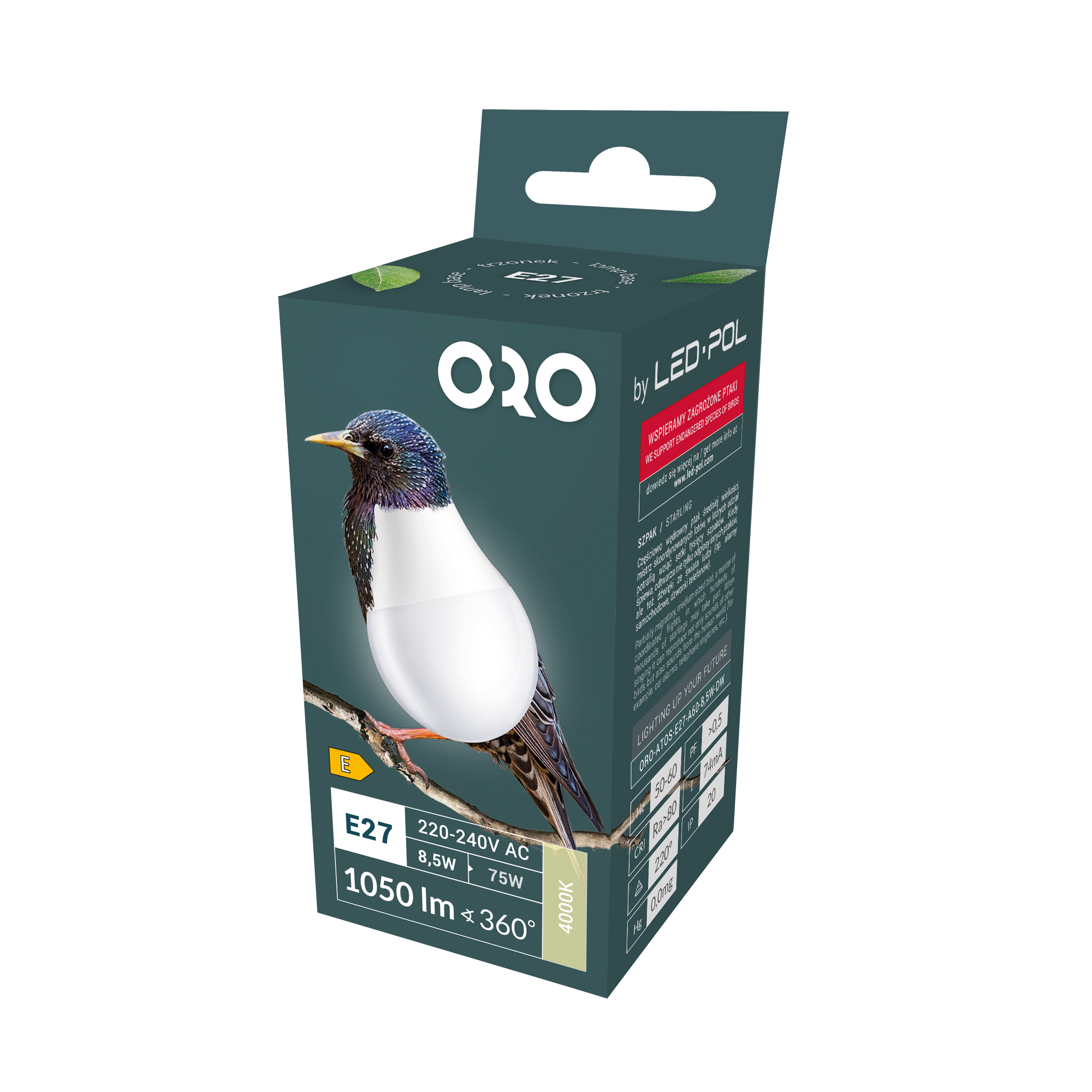 Zapewnia jasność porównywalną z tradycyjną żarówką 60 W, przy znacznie niższym zużyciu energii, dłuższej żywotności i mniejszej emisji ciepła.