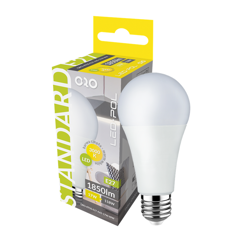 Wydajne i wysokiej klasy źródło światła o zimnej barwie 6500 K — idealna tam, gdzie potrzebujesz jasności i klarowności, np. w kuchni, łazience, warsztacie czy biurze. Standardowy gwint E27 zapewnia łatwy montaż w typowych oprawach domowych, natomiast moc 17 W przy strumieniu świetlnym na poziomie około 1900 lm pozwala na skuteczne oświetlenie większych przestrzeni przy zachowaniu energooszczędności. Kulisty kształt A65 i duży kąt świecenia dają równomierne rozproszenie światła — bez miejscowego ostrego blasku.