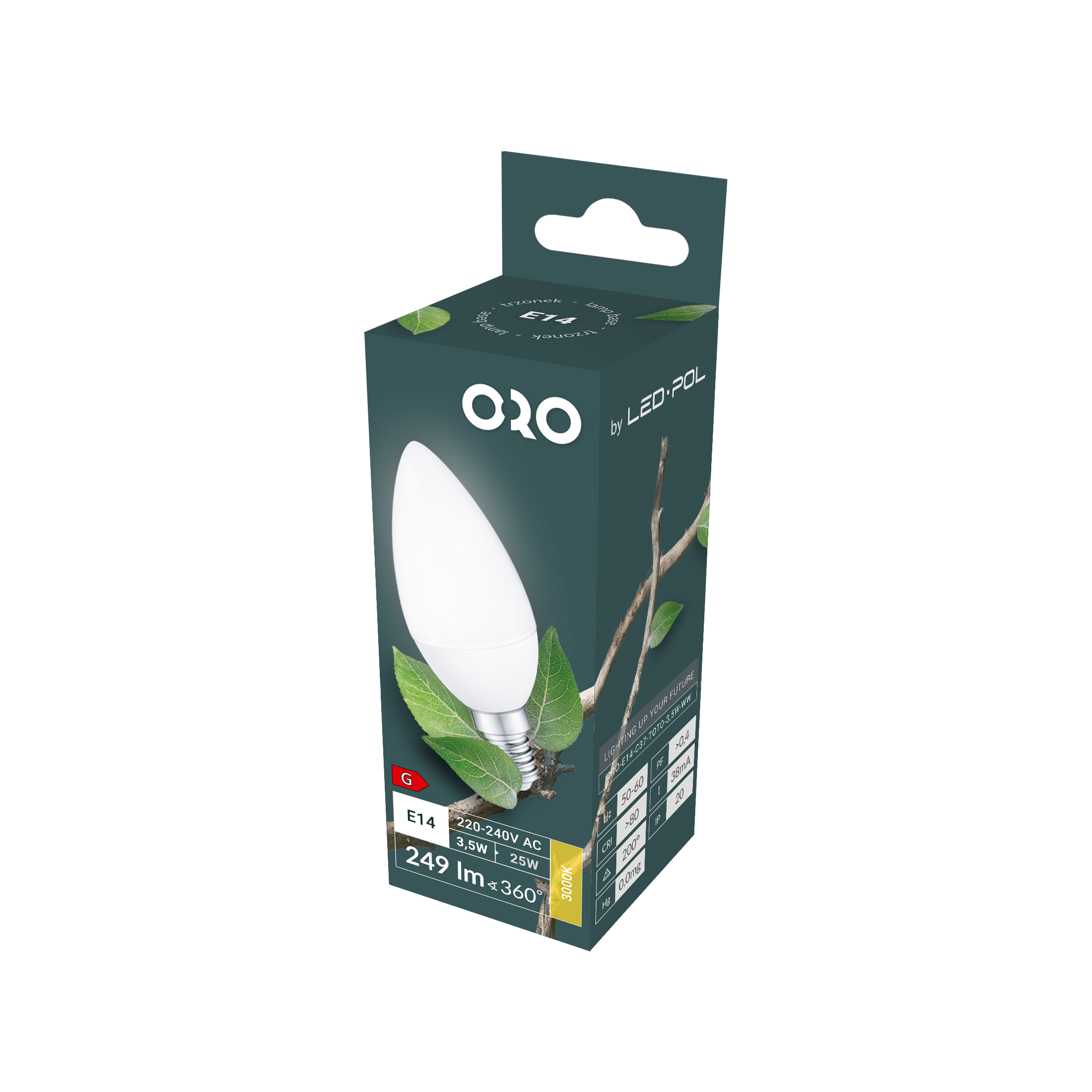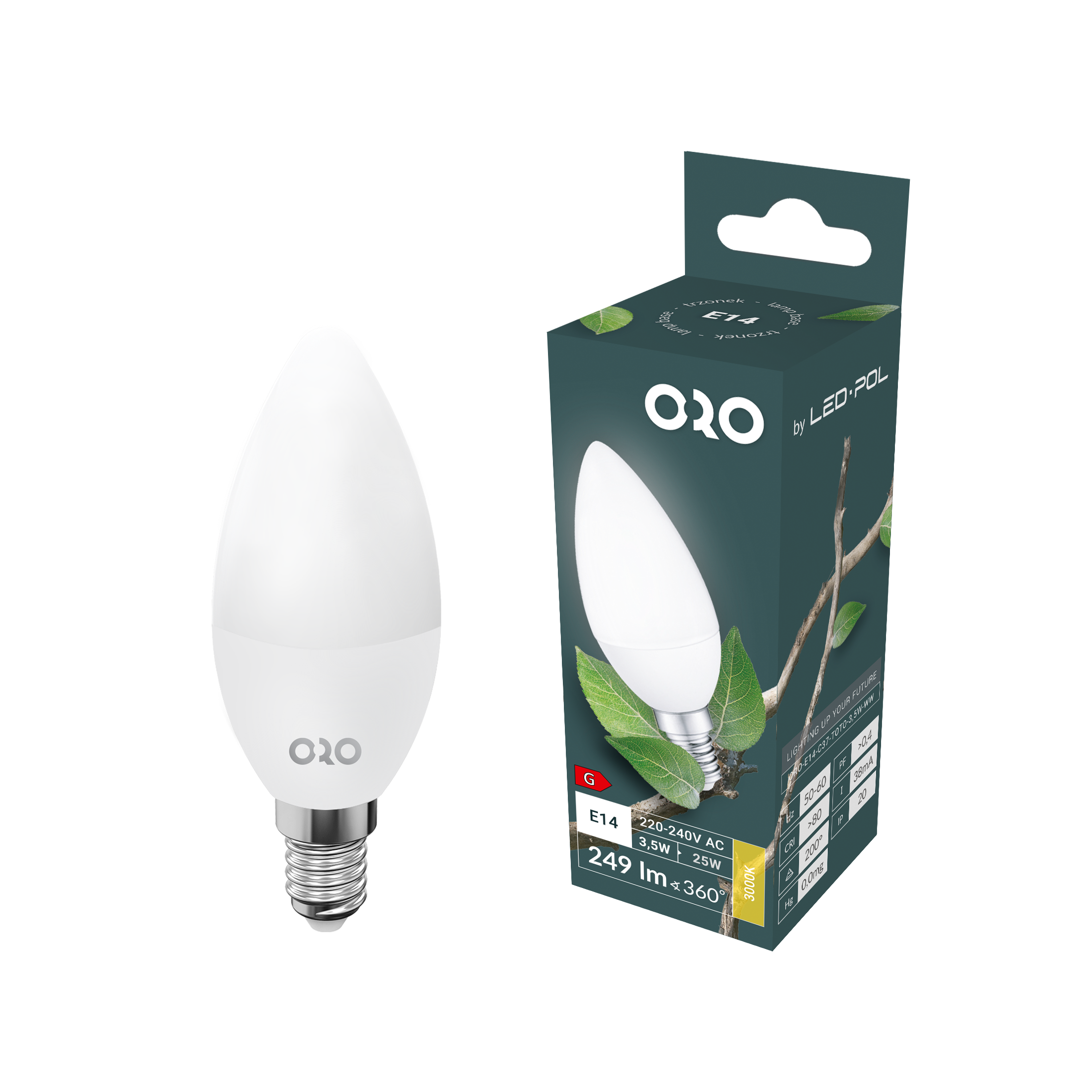 ORO-E14-C37-TOTO-3,5W-WW Lampa LED E14 C37 3,5W 249Lm 3000K 200° Fi37x100, klasa energetyczna G