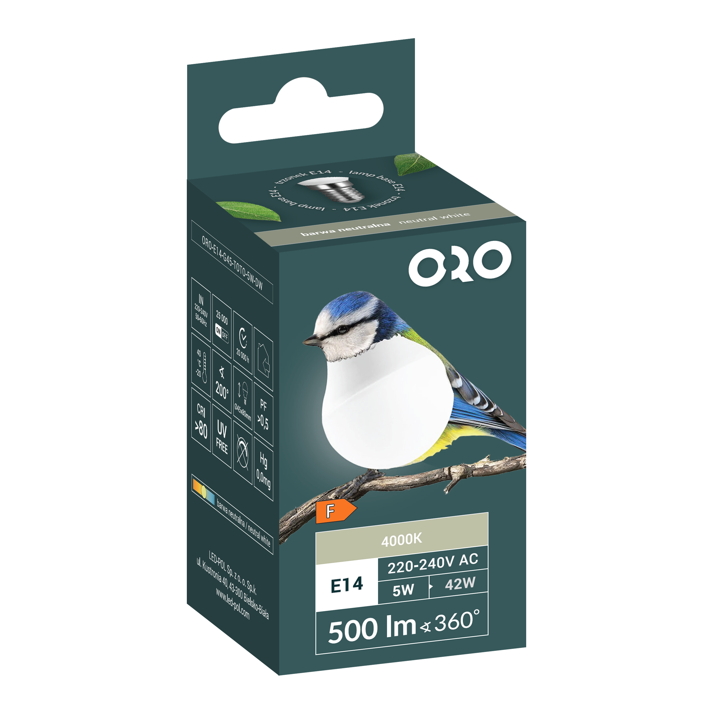 Kompaktowe i energooszczędne źródło światła w kształcie kulki. Doskonale sprawdzi się w lampkach nocnych, kinkietach, żyrandolach i innych dekoracyjnych oprawach z gwintem E14. Neutralna barwa światła zapewnia naturalne odwzorowanie kolorów i komfort widzenia, a dzięki technologii LED żarówka jest trwała, wydajna i ekonomiczna w użytkowaniu.