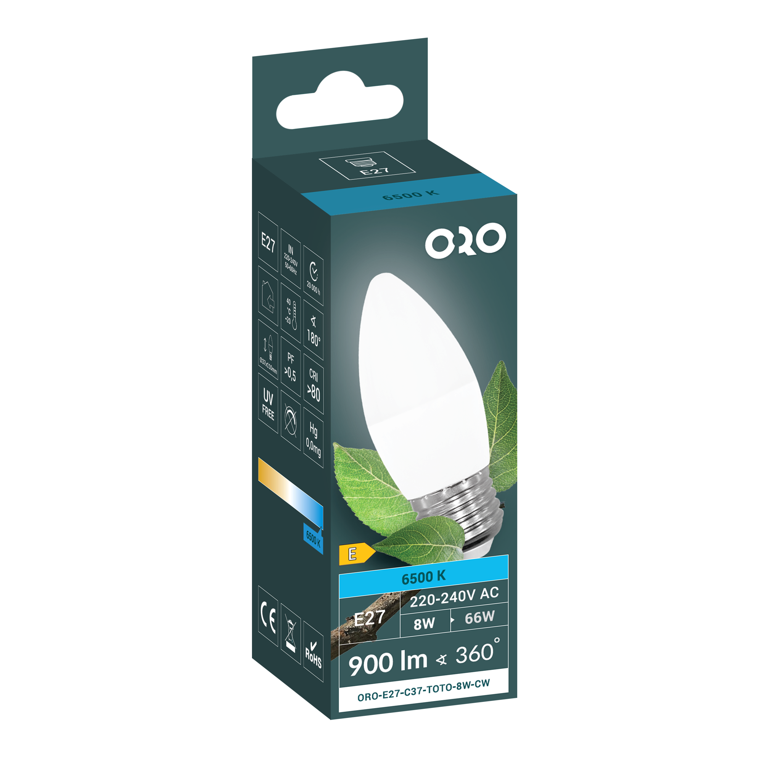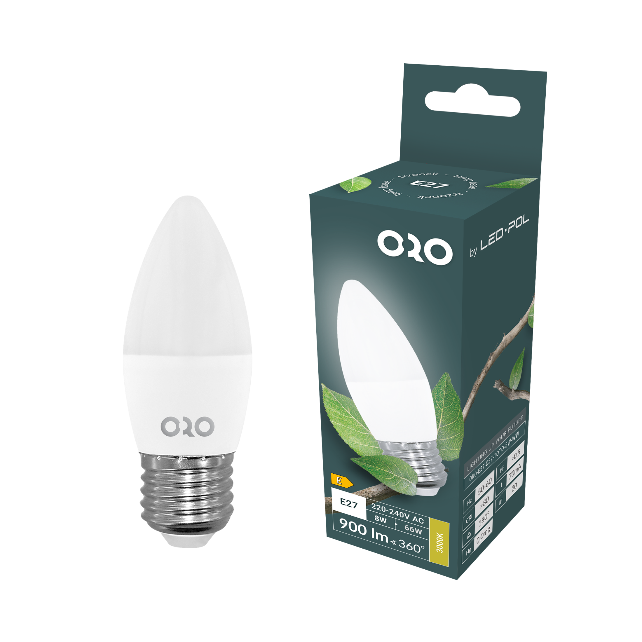 ORO-E27-C37-TOTO-8W-WW Lampa LED E27 C37 8W 900Lm 3000K 200° Fi37x100, klasa energetyczna E