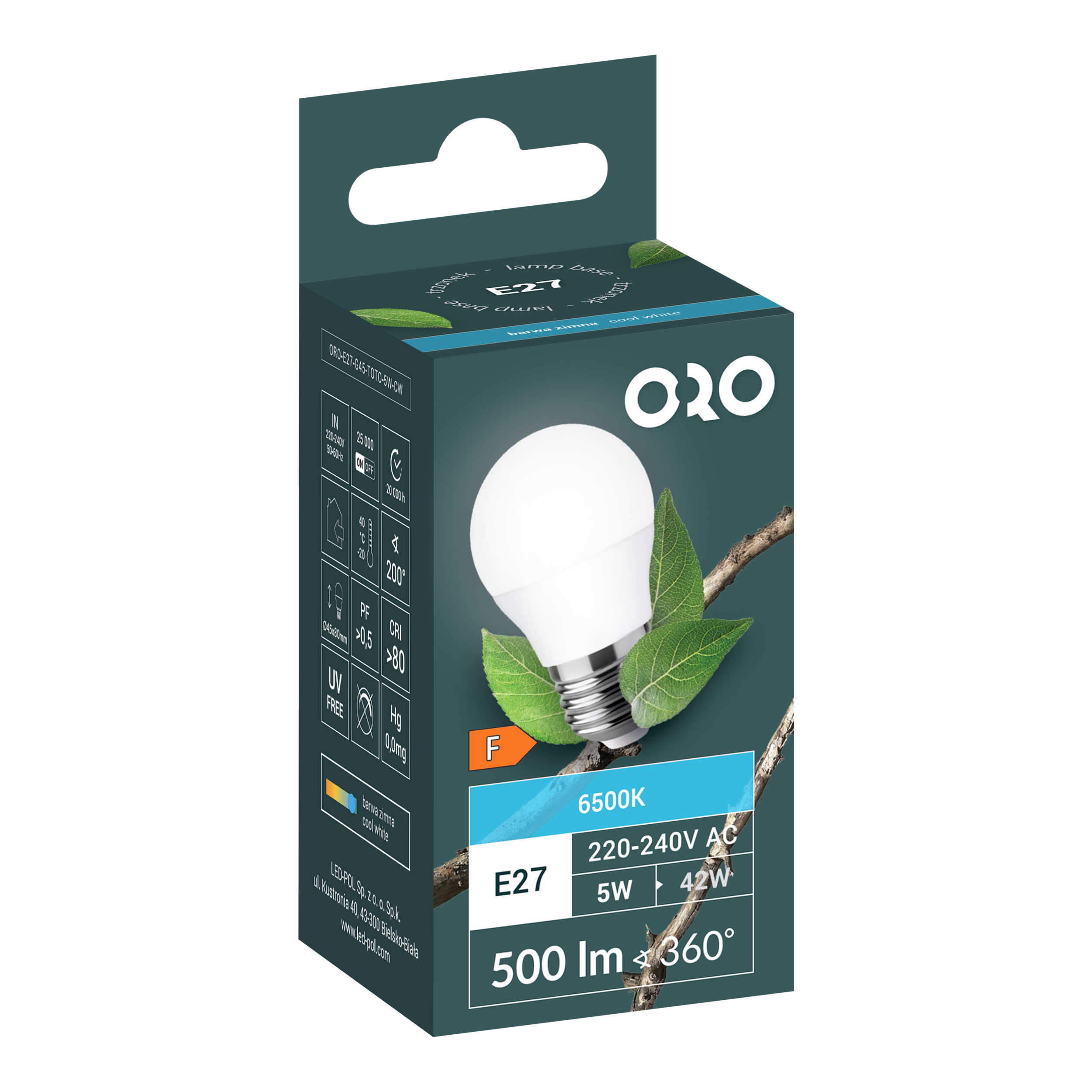 Źródło światła w kompaktowej formie kulki. Emituje jasne, chłodne światło sprzyjające koncentracji i idealne do pomieszczeń wymagających dobrej widoczności – takich jak kuchnia, łazienka, biuro czy warsztat. Dzięki standardowemu gwintowi E27 pasuje do większości domowych opraw, a technologia LED zapewnia wysoką trwałość i niskie zużycie energii.