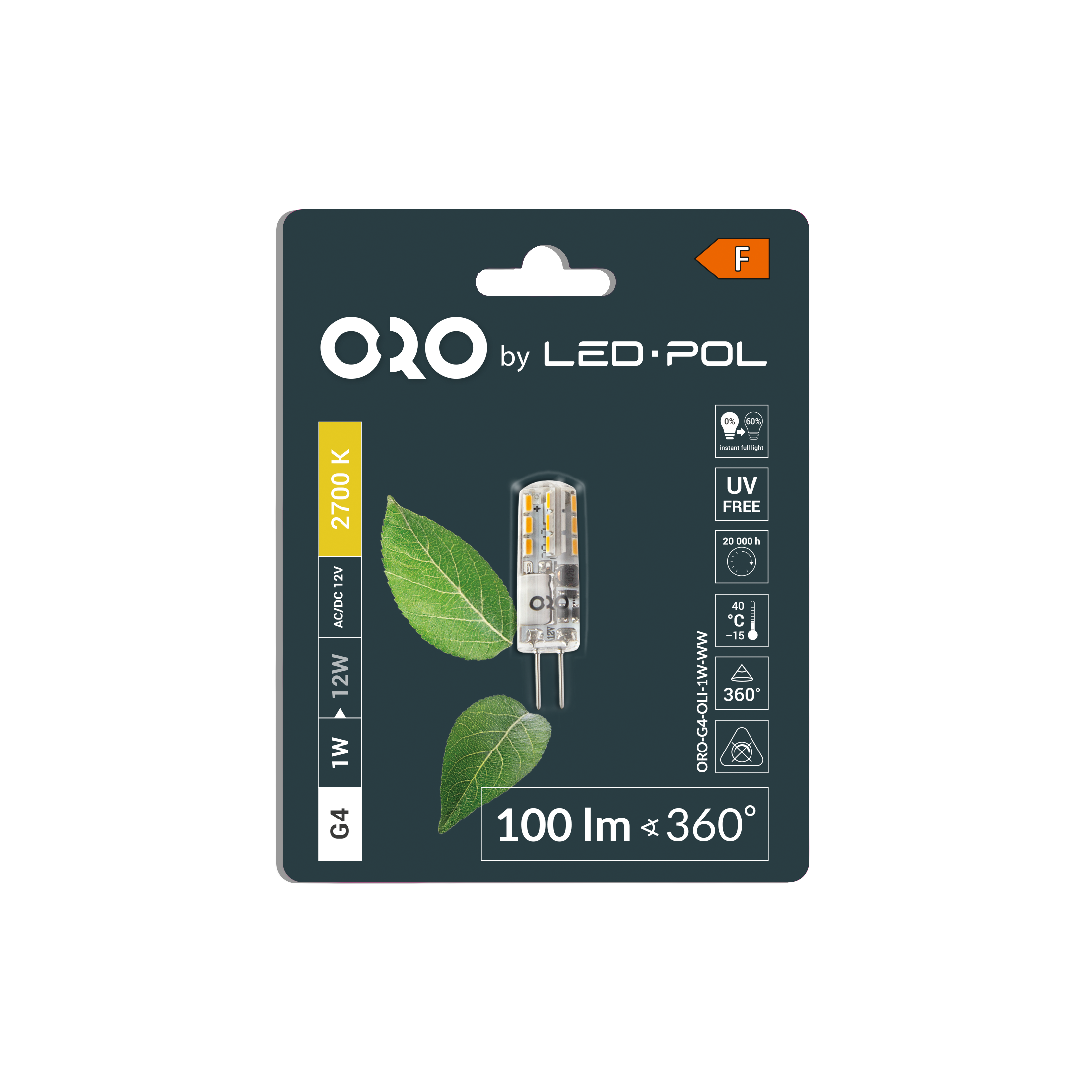 Żarówka LED ORO-G4-OLI-1W-WW to energooszczędne źródło światła przeznaczone do opraw z trzonkiem G4. Dzięki kompaktowym wymiarom i pełnemu kątowi świecenia 360° doskonale sprawdza się w lampkach dekoracyjnych, meblowych oraz w oświetleniu akcentowym. Emituje przyjemne, ciepłobiałe światło o temperaturze barwowej 2700 K, które tworzy nastrojową i komfortową atmosferę we wnętrzach. Zastosowana technologia LED zapewnia długą żywotność oraz bardzo niski pobór energii – tylko 1 W, co czyni tę żarówkę idealnym zamiennikiem tradycyjnych kapsułkowych źródeł światła.