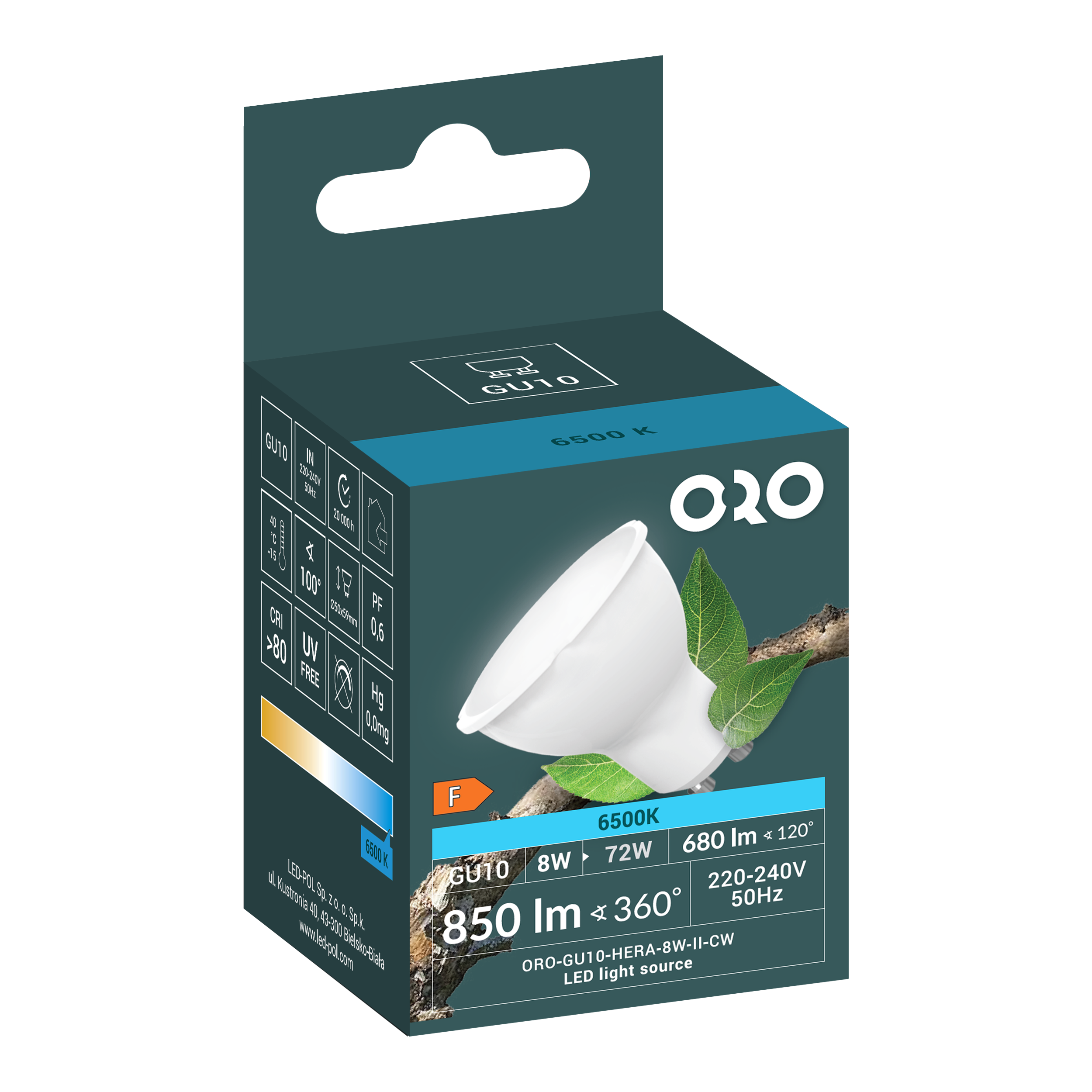 Źródło światła przeznaczone do opraw z trzonkiem GU10. Emituje jasne, chłodne światło, które doskonale sprawdza się w pomieszczeniach wymagających precyzyjnego i intensywnego oświetlenia. Idealna do kuchni, łazienek, biur oraz przestrzeni komercyjnych. Dzięki technologii LED zapewnia dużą oszczędność energii, długą żywotność i natychmiastowe pełne światło po włączeniu.