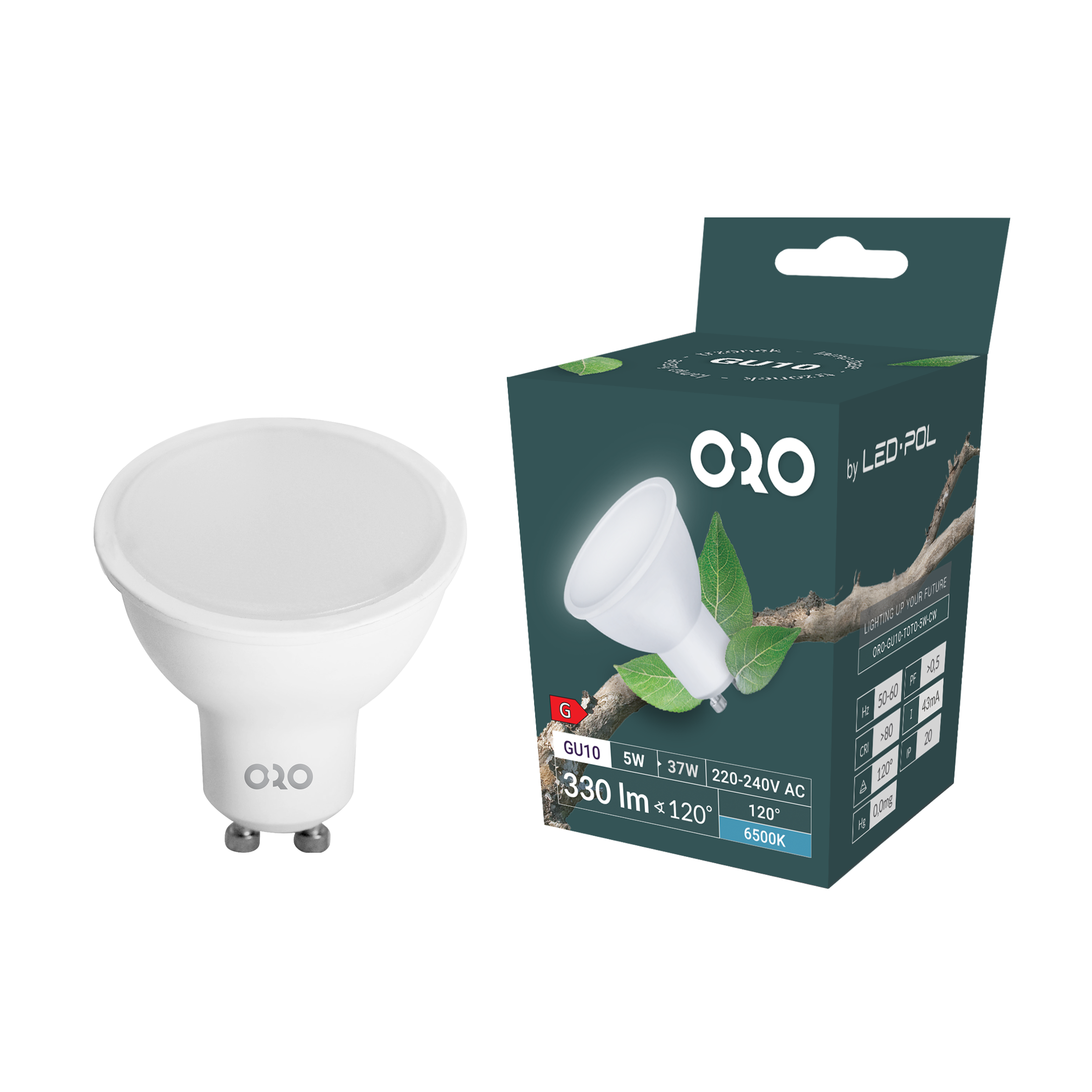 ORO-GU10-TOTO-5W-CW Lampa LED GU10 5W strumień użyteczny 330Lm 6500K 120° Fi50x55 klasa energetyczna G