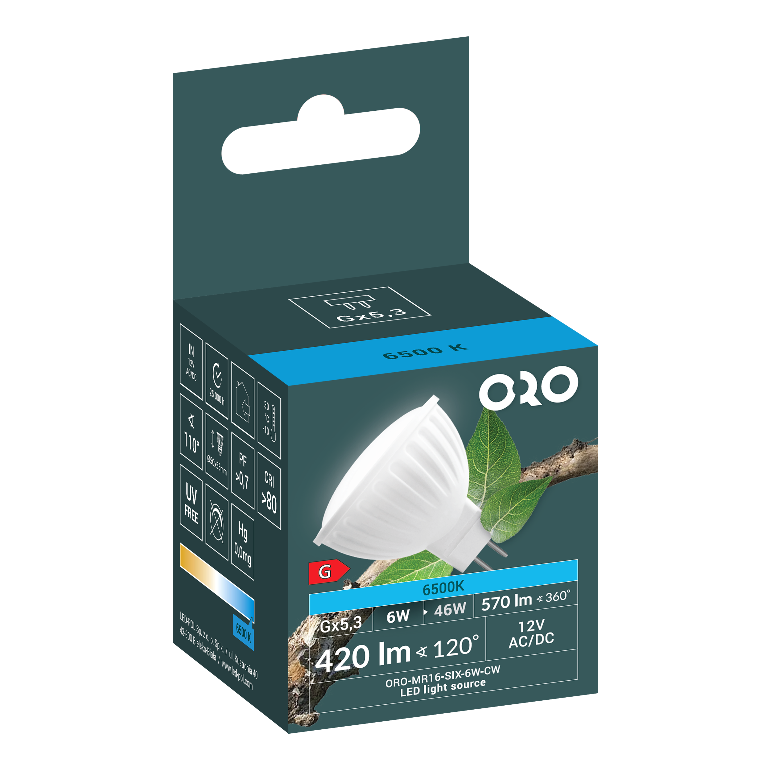 Nowoczesne i energooszczędne źródło światła typu reflektor, przeznaczone do opraw z trzonkiem GU5.3 (MR16) i zasilania 12 V. Emituje intensywne, chłodne światło, które doskonale sprawdza się w pomieszczeniach wymagających precyzyjnego i wyraźnego oświetlenia. Idealna do sufitów podwieszanych, gablot, witryn, biur i przestrzeni roboczych. Dzięki technologii LED zapewnia wysoką jasność, niskie zużycie energii i długą żywotność.