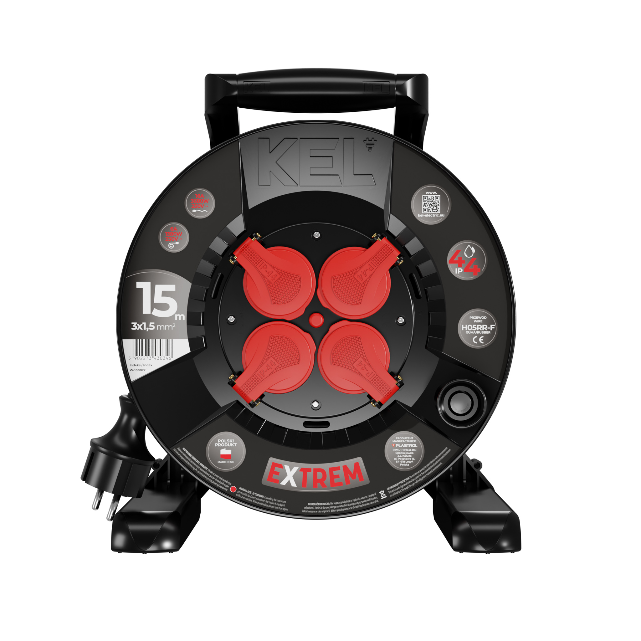 Przedluzacz bebnowy EXTREME LINE; 4x2p+Z; IP44; 16A; H07BQ-F; 3x2,5; 2