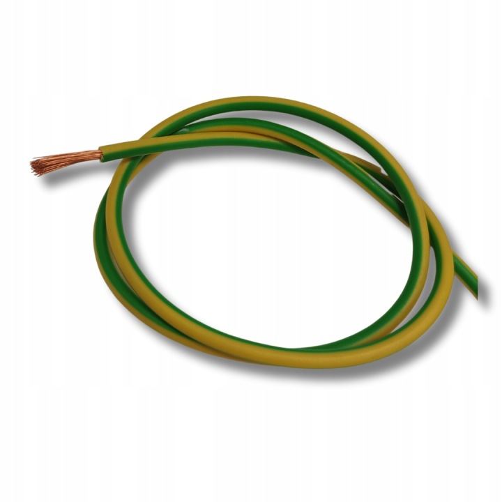 Izolacja z wytrzymałego PVC gwarantuje trwałość oraz bezpieczną pracę przy napięciu 450/750 V. Żółto-zielony kolor izolacji oznacza przewód ochronny PE, stosowany do połączeń uziemiających i wyrównawczych w instalacjach elektrycznych budynków.