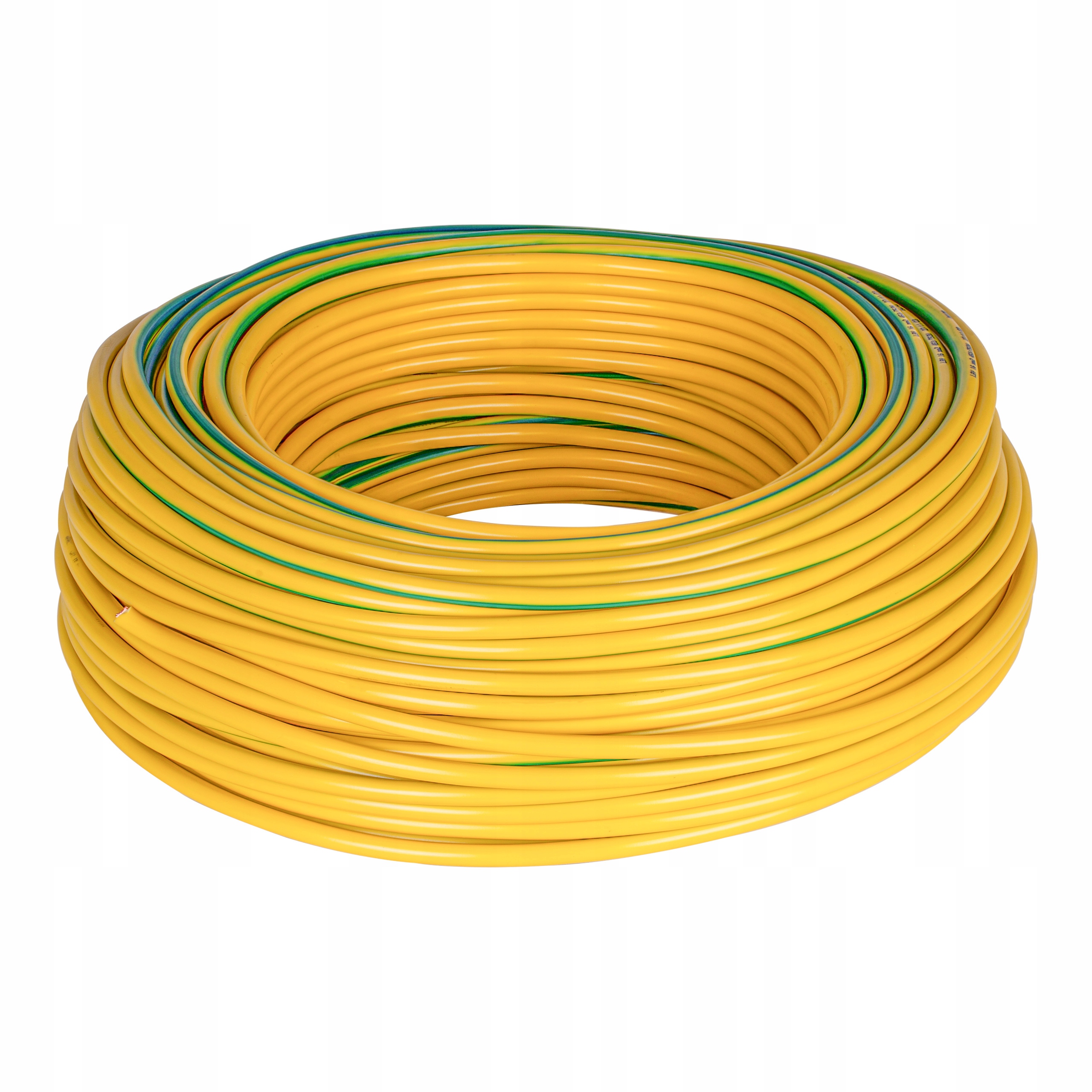 Izolacja PVC gwarantuje trwałość oraz bezpieczną pracę przy napięciu do 450/750 V. Zielono-żółty kolor oznacza przewód ochronny (PE), stosowany do uziemienia oraz połączeń wyrównawczych w instalacjach elektrycznych.