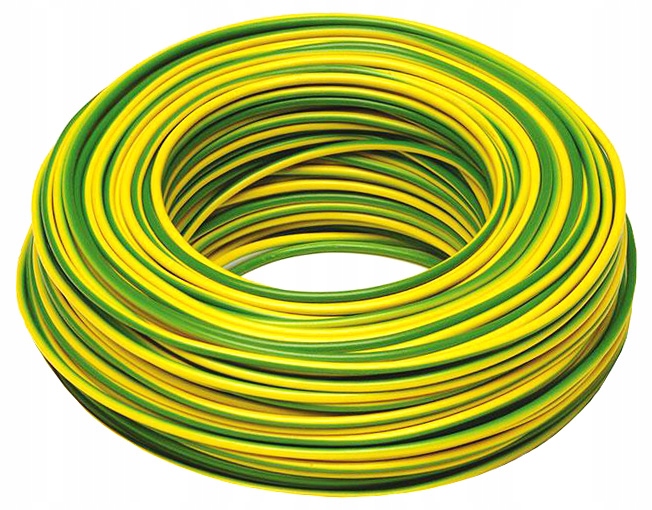 Żółto-zielona izolacja oznacza przewód ochronny PE, stosowany w instalacjach uziemiających oraz połączeniach wyrównawczych. Izolacja z PVC zapewnia dobrą ochronę mechaniczną oraz bezpieczną pracę w instalacjach niskiego napięcia.