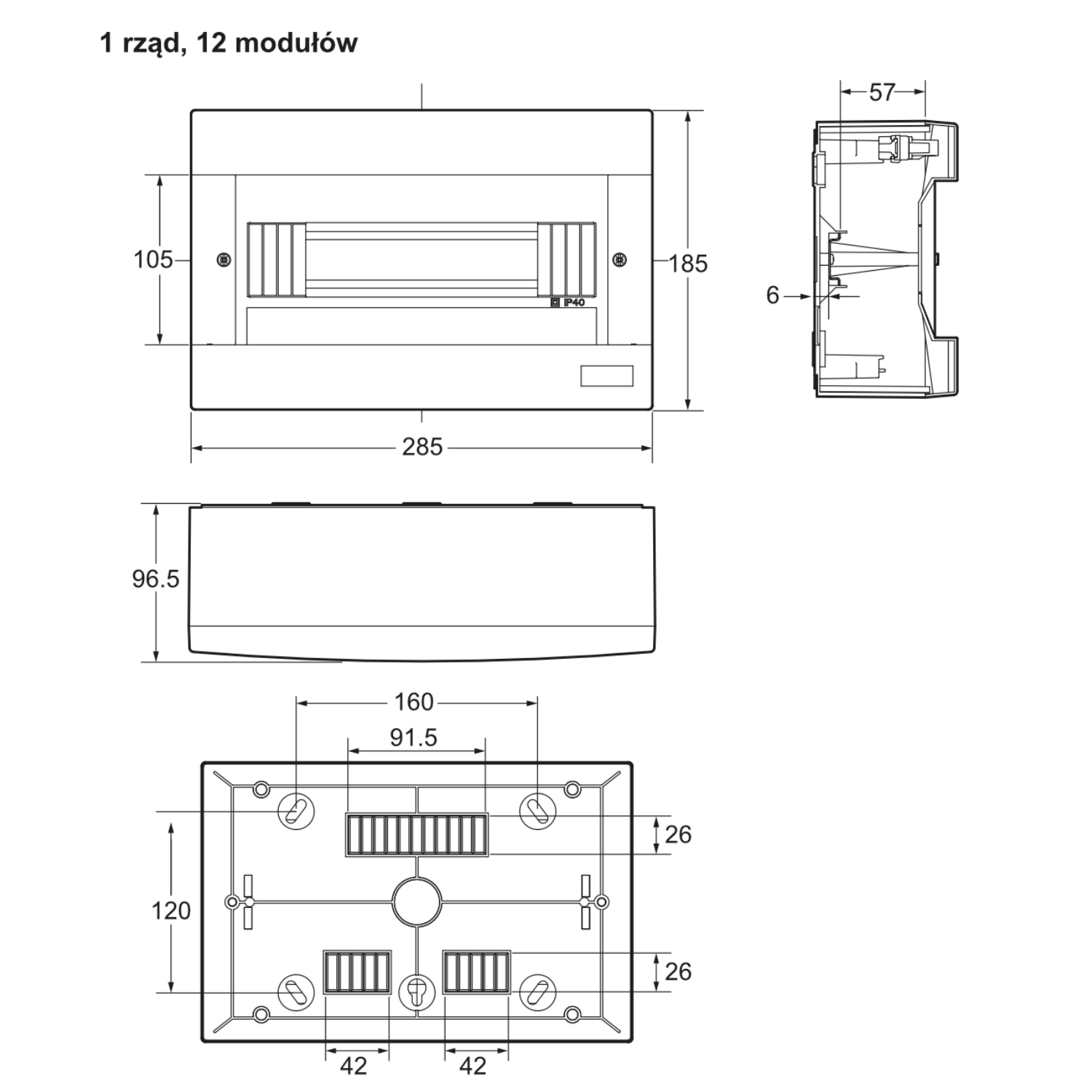 Rozdzielnica mieści do 12 standardowych modułów 18 mm w jednym rzędzie.