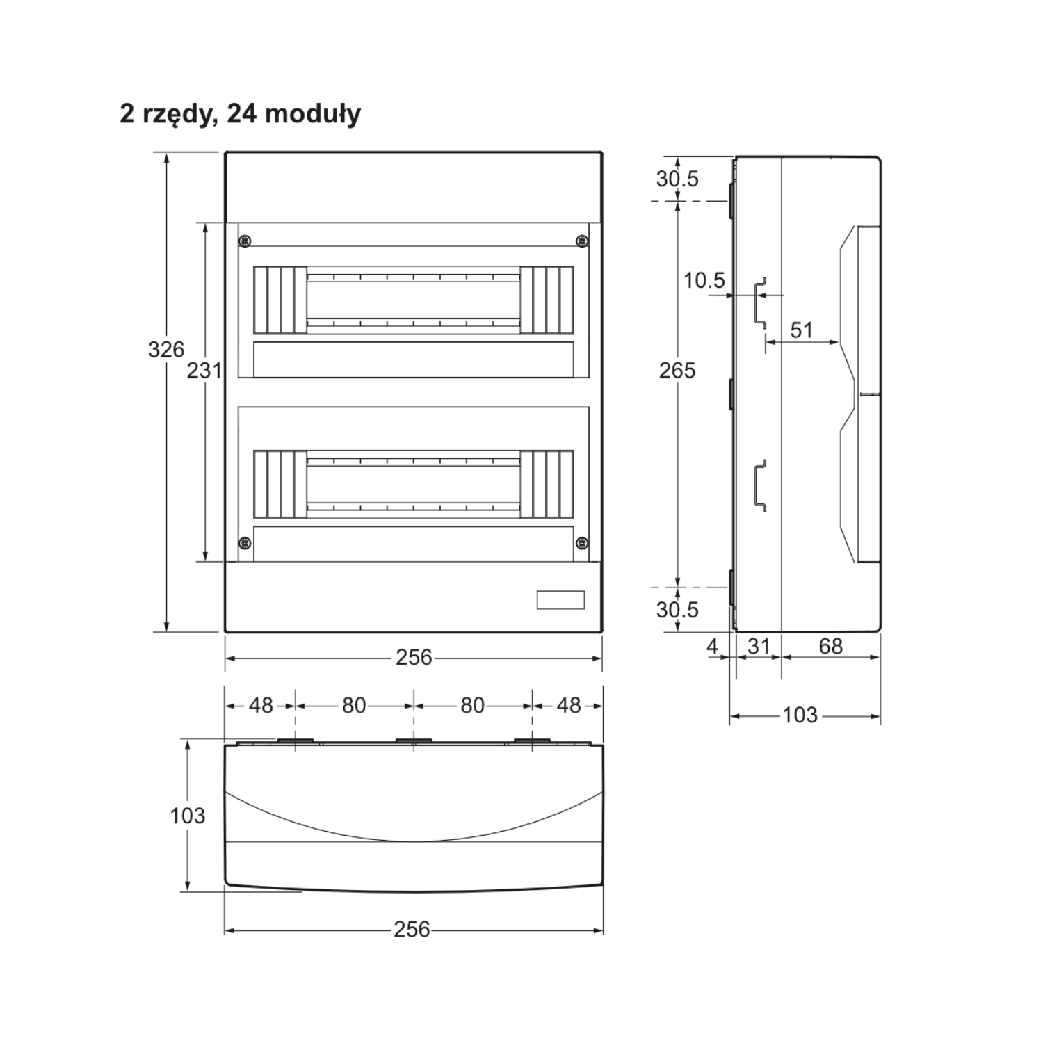 Oznacza dwa rzędy po 12 modułów 18 mm każdy, czyli łącznie miejsce na 24 moduły.