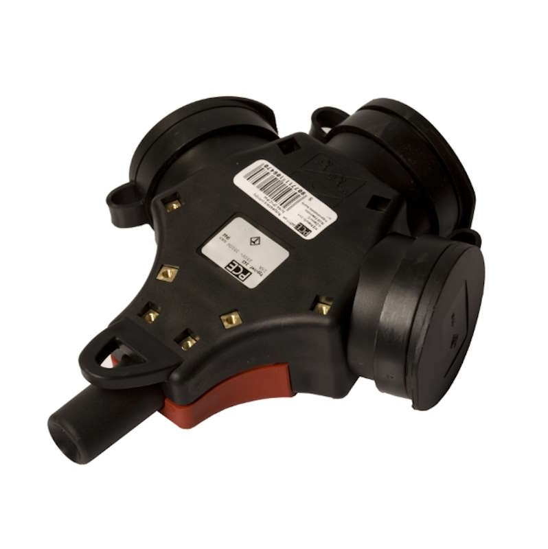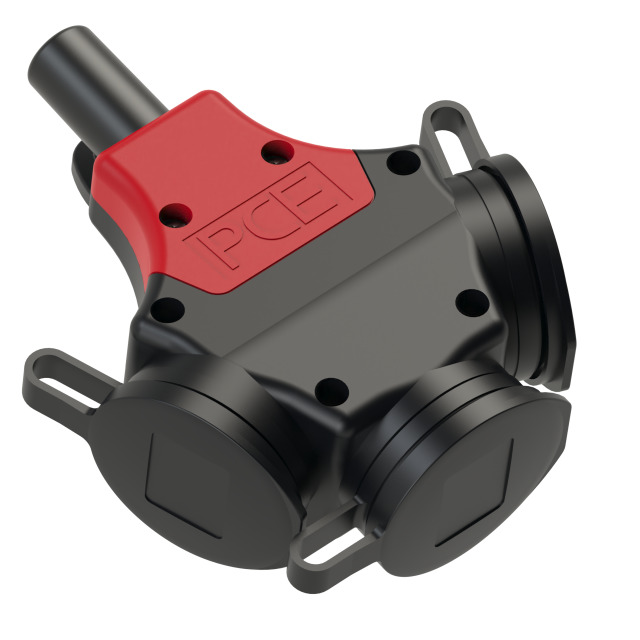 Rozgałęziacz potrójny Taurus2 z bolcem z zatyczką IP54 czerwony gniazdo gumowe