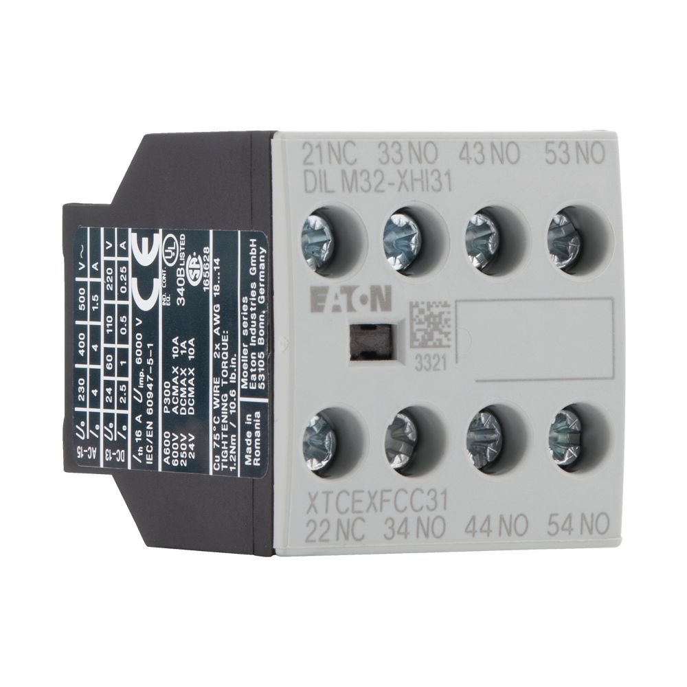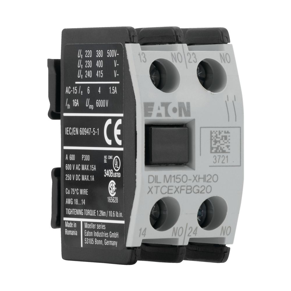 Wydajne rozszerzenie funkcjonalności dla styczników serii DILM. Wyposażony w dwa styki zwierne (2 NO) oraz dwa styki rozwierne (2 NC), pozwala na realizację bardziej złożonych funkcji sygnalizacyjnych i sterowniczych w rozdzielnicy automatyki. Montowany bocznie do stycznika, moduł nie ingeruje w główne tory prądowe. Jego kompaktowa konstrukcja ułatwia integrację w istniejącej instalacji, a możliwość sygnalizacji wielu stanów czyni go praktycznym wyborem w systemach przemysłowych i automatycznych.