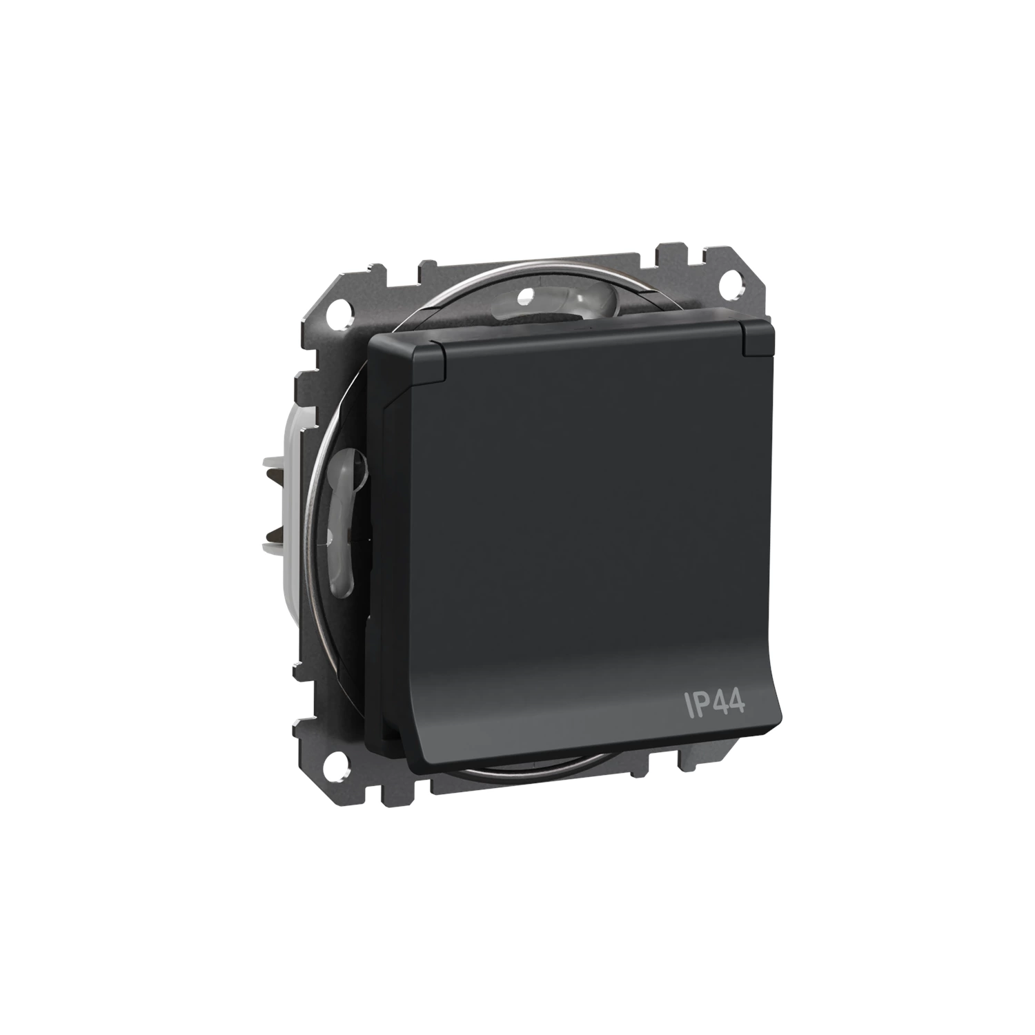 Gniazdo 2P+PE z przesłonami IP44 SEDNA DESIGN, ELEMENTS, czarny antracyt, SDD214013, SCHNEIDER ELECTRIC