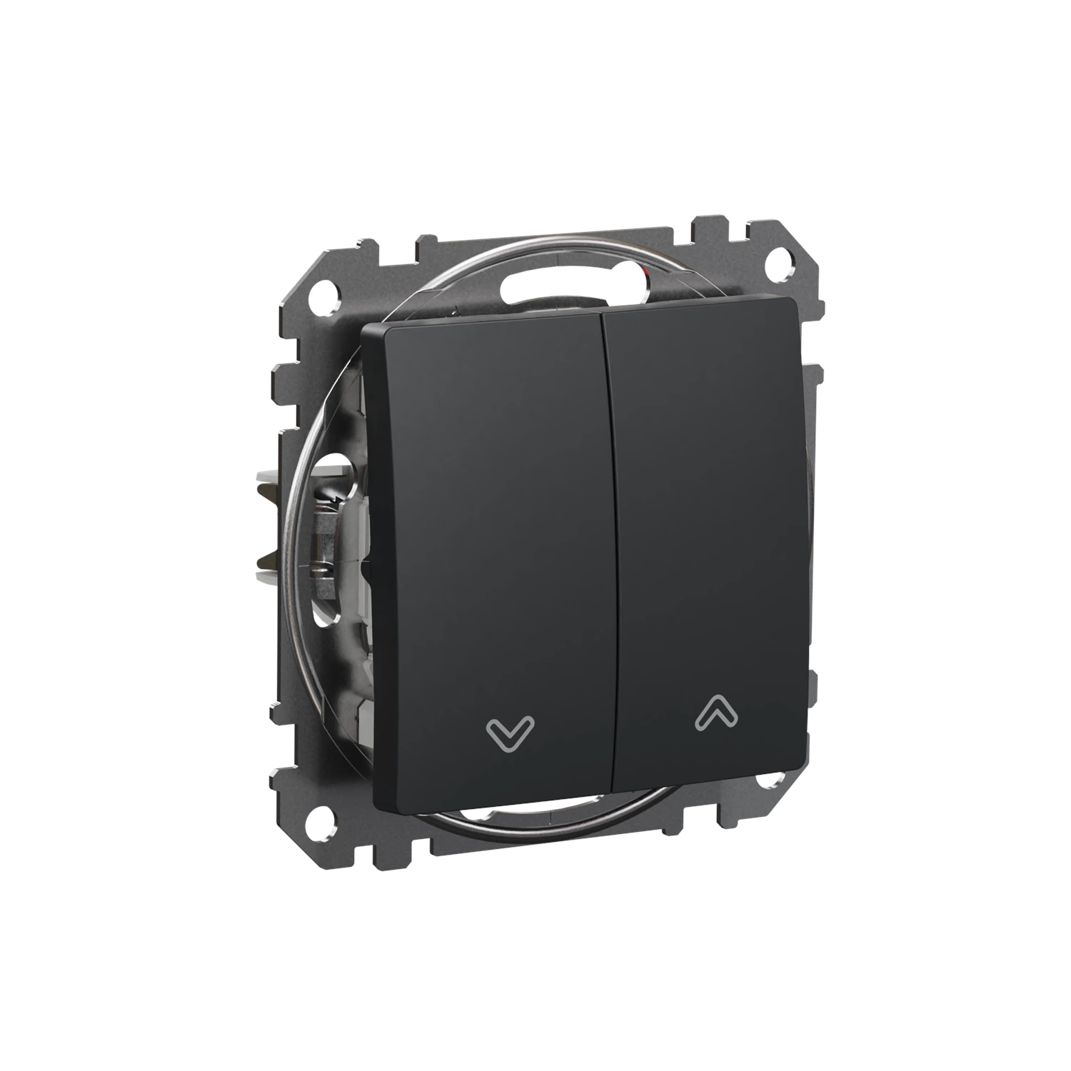 Elegancki i funkcjonalny element osprzętu elektrycznego przeznaczony do sterowania żaluzjami, roletami oraz innymi napędami osłon okiennych. Minimalistyczny design oraz wykończenie w kolorze czarnego antracytu doskonale wpisują się w nowoczesne i loftowe aranżacje wnętrz. Przycisk zapewnia wygodną obsługę oraz estetyczne wykończenie instalacji dzięki montażowi podtynkowemu.