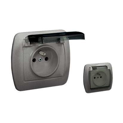 Gniazdo pojedyncze bryzgoszczelne IP44 z uziemieniem, bez przesłon torów prądowych, wyposażone w klapkę transparentną— to prostsze rozwiązanie bryzgoszczelne, idealne tam, gdzie nie wymagane są przesłony, ale nadal potrzebna jest ochrona przed wodą i pyłem. Transparentna klapka pozwala na kontrolę statusu gniazda bez konieczności jego otwierania.
