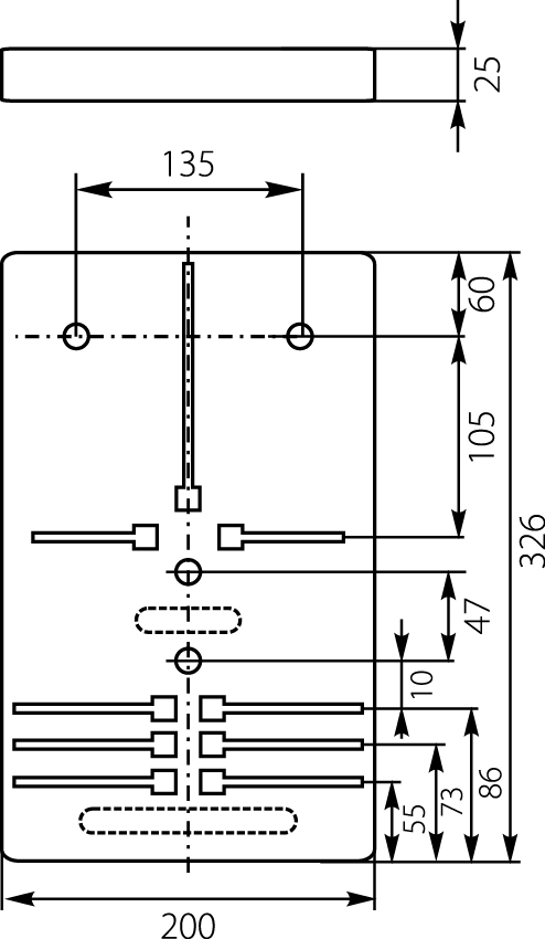 Obudowa wykonana z trwałego ABS w kolorze szarym (RAL 7035) zapewnia estetyczny wygląd i odporność na codzienną eksploatację. Dzięki wymiarom 326 × 200 mm tablica oferuje kompaktową obudowę, ale wystarczającą przestrzeń na poprawny montaż urządzenia pomiarowego z przewodami w zakresie do 10 mm².