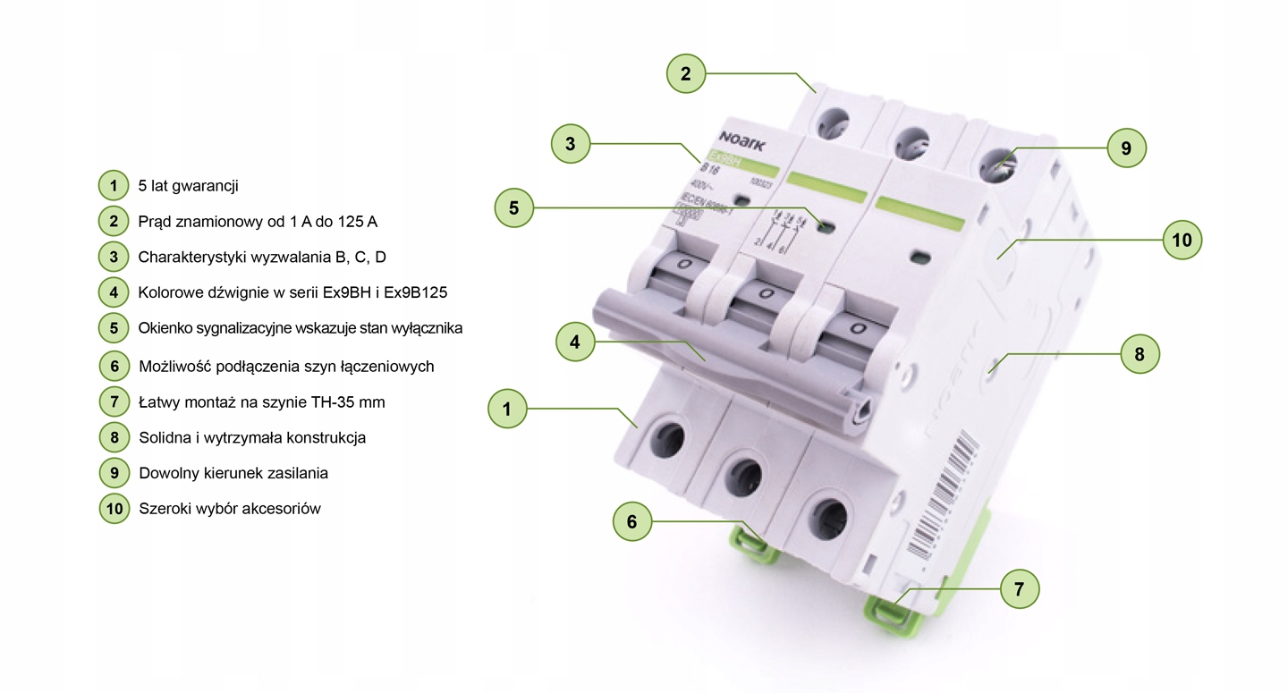 • Zgodność z normami: EN 60898-1, IEC 60947-2