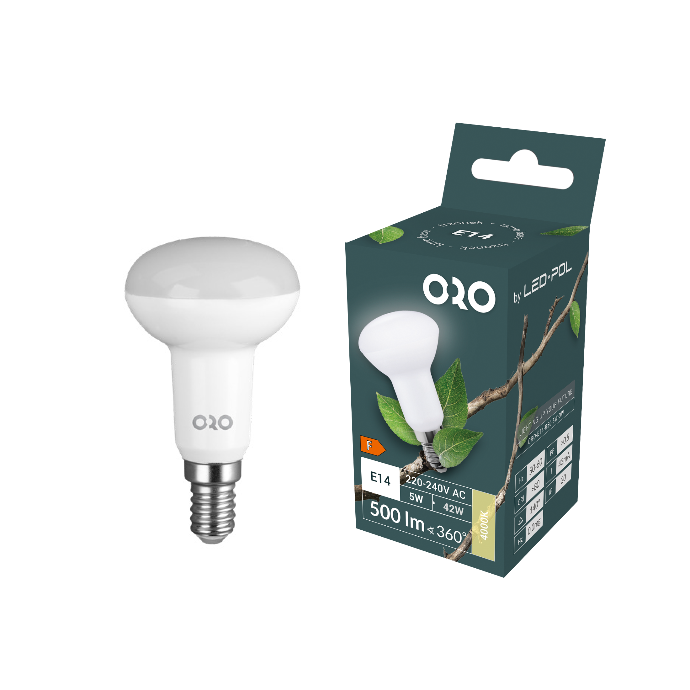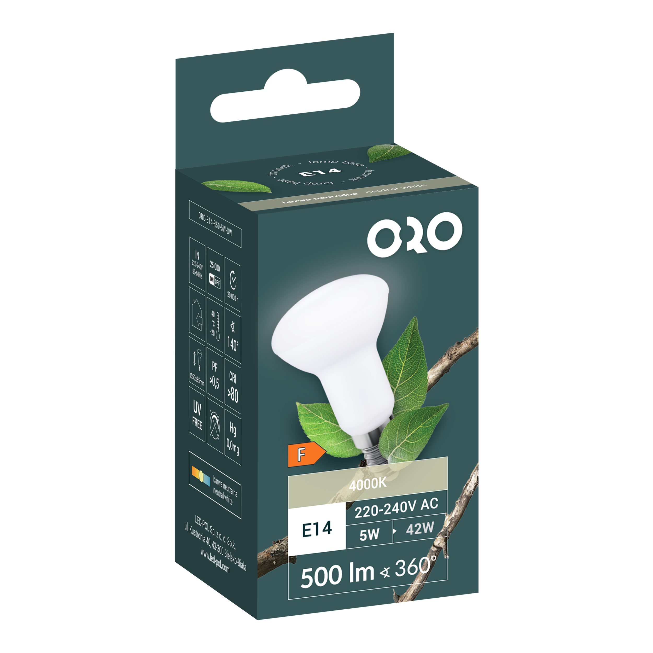 ORO-E14-R50-5W-DW Lampa LED E14 5W 500Lm 4000K 140° Fi50x85, klasa energetyczna F