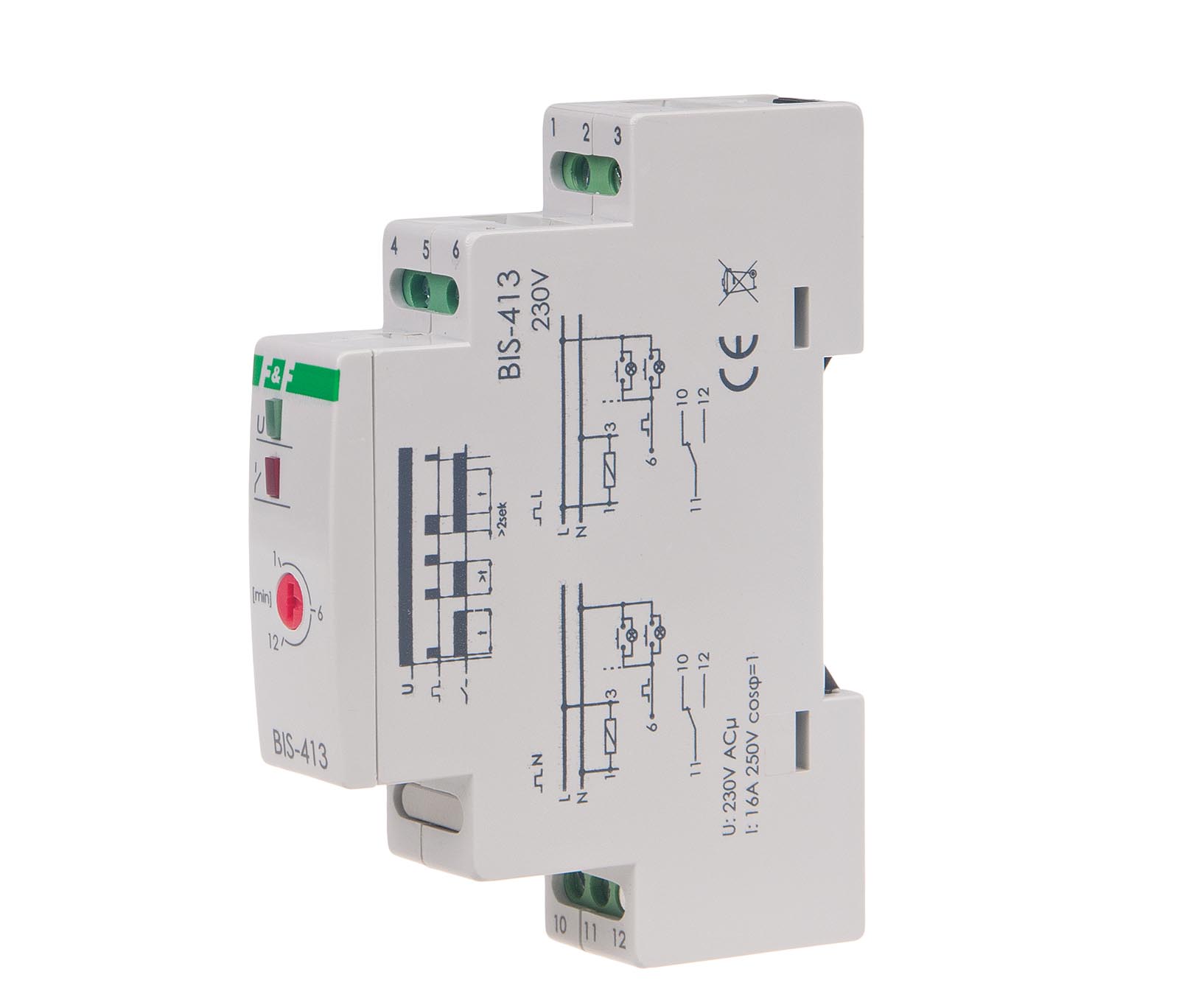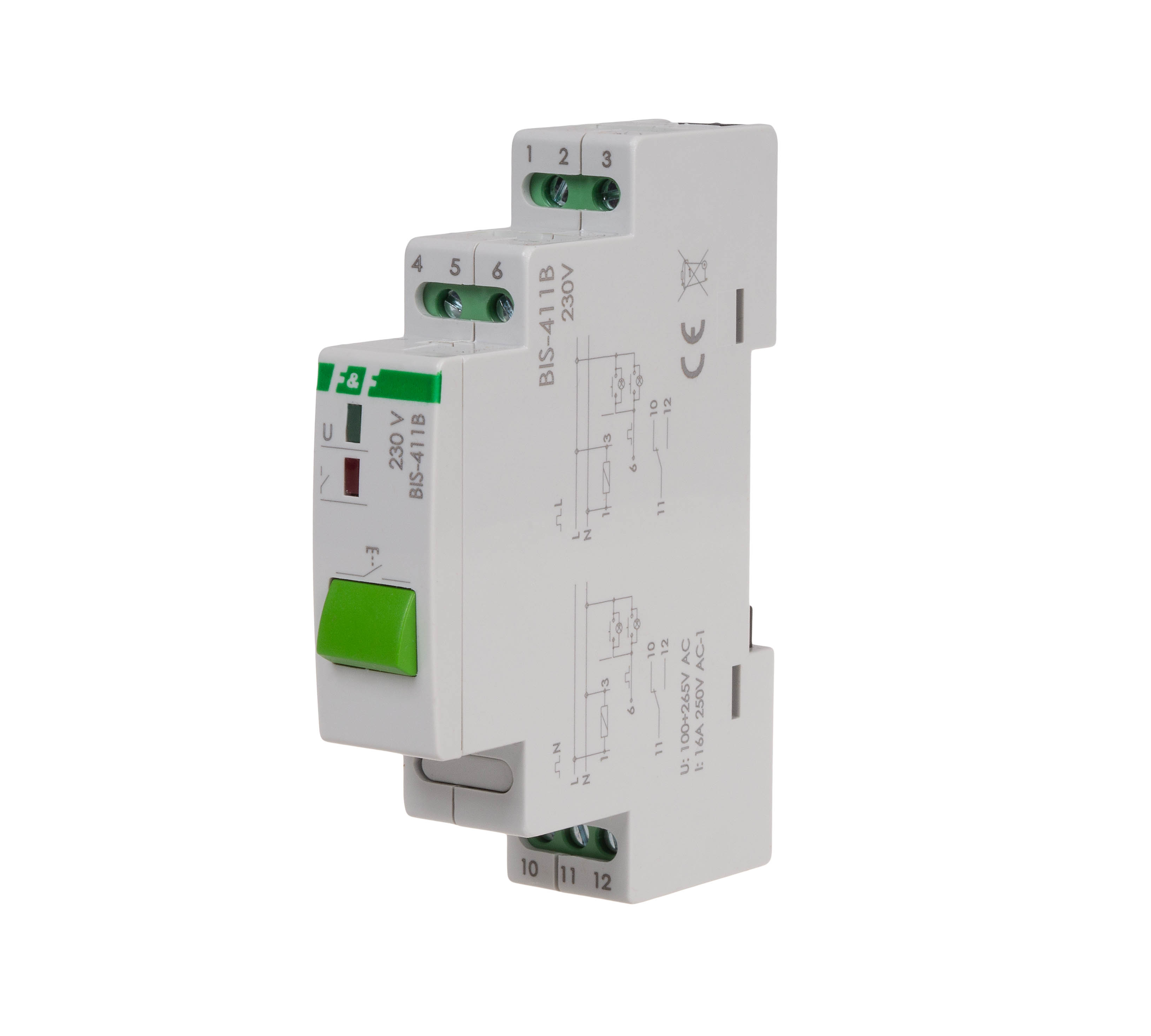 Przekaźnik bistabilny BIS-411 z przyciskiem do sterowania ręcznego, montaż na szynie DIN
